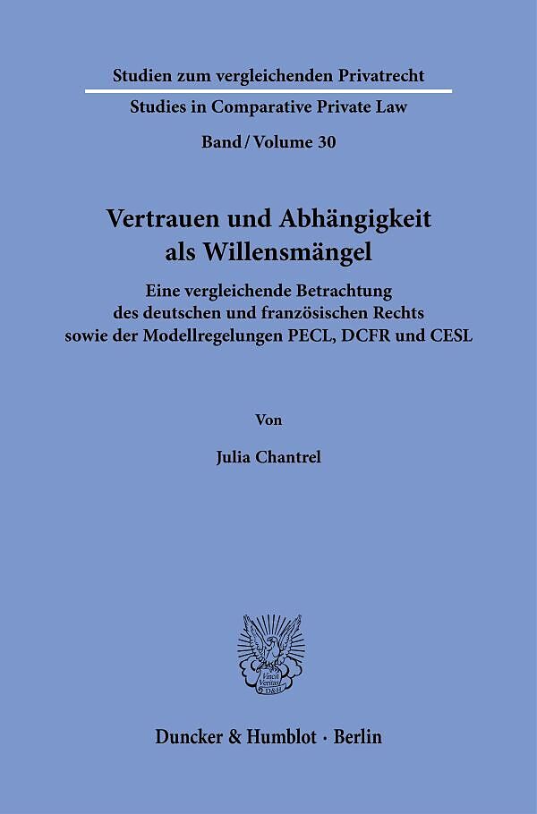 Die Arbeit untersucht rechtsvergleichend das deutsche und französische Recht sowie die PECL, DCFR und CESL dahingehend, ob Willensbeeinträchtigungen aufgrund persönlichen Vertrauens oder emotionaler Abhängigkeit die Lösung von einem dadurch geschlossenen Vertr...