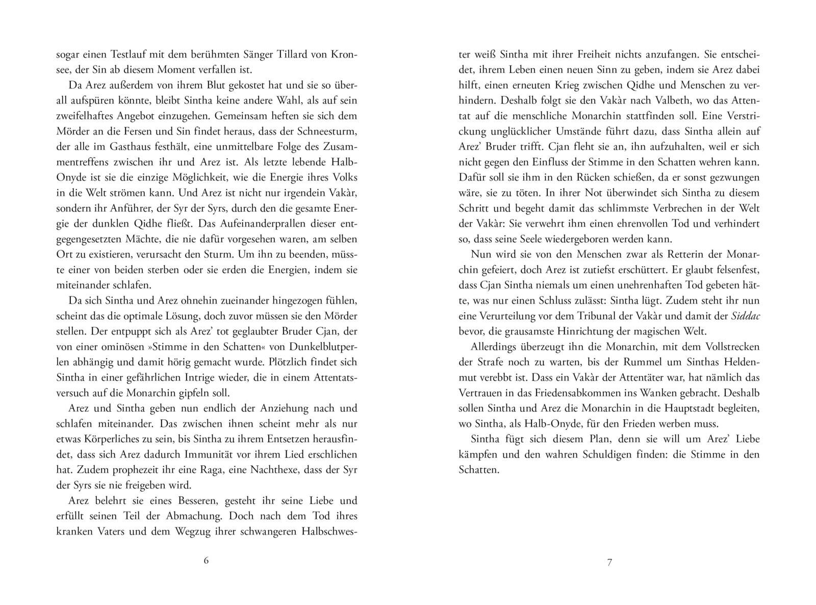 Manchmal reicht ein Kuss, um ein Herz zu brechen Sintha konnte die mysteriöse Mordserie in Enebha zwar beenden, doch der Preis dafür war hoch: Jeder weiß nun, wer sie ist. Darum muss sie an der Seite der Monarchin in die Hauptstadt reisen, wo sie als Symbol d...