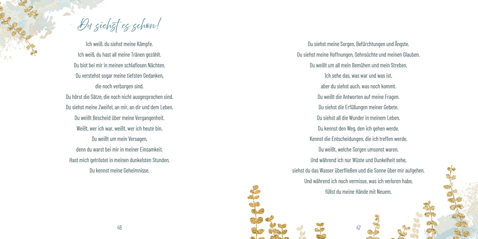 Weißt du eigentlich, wie sehr du von Gott geliebt bist? Dass du mit allem, was dich beschäftigt, zu ihm kommen kannst auch und gerade an Tagen, an denen nichts zu klappen scheint und du an allem zweifelst? Du darfst dir gewiss sein: Du bist nie allein. Gott si...