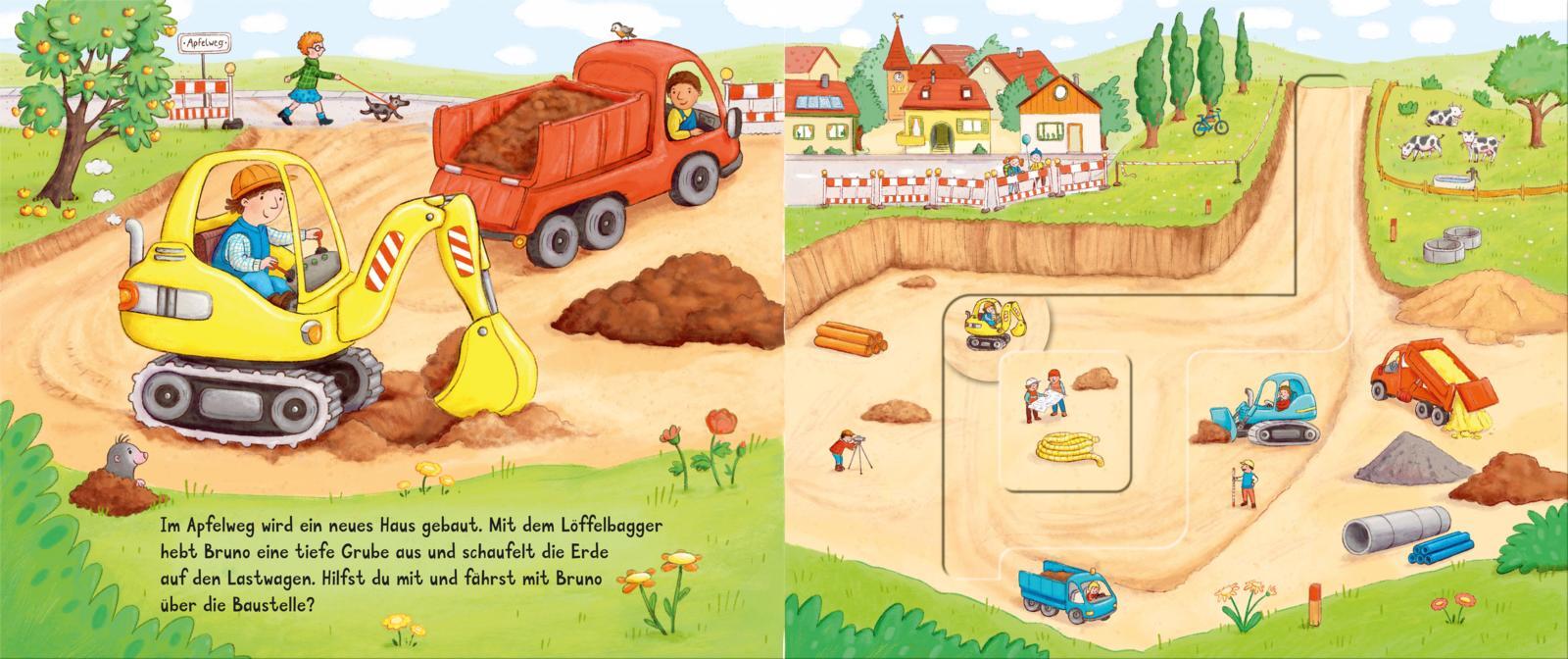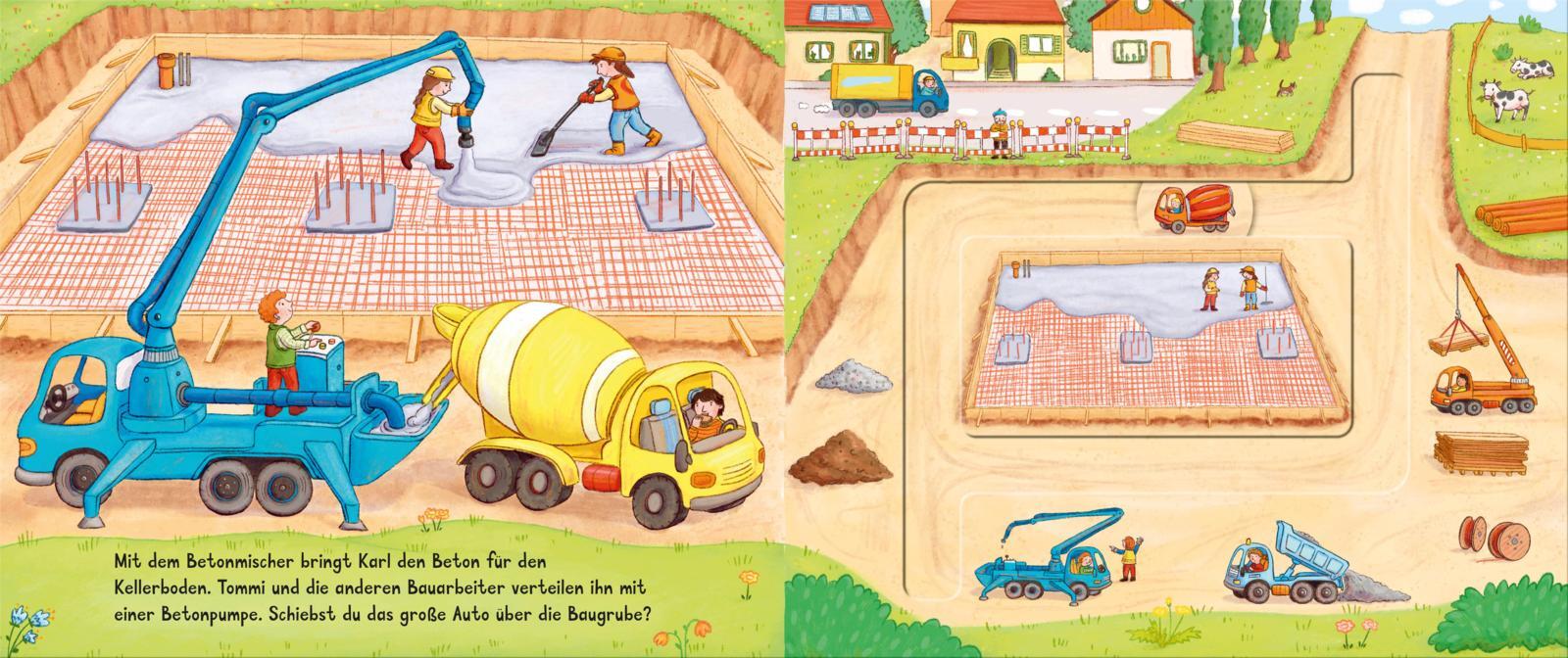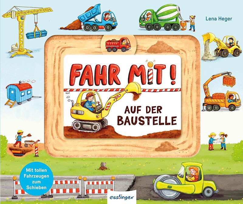Fahr mit! Hier können schon die Kleinen spielerisch auf der Baustelle mithelfen! Große Schiebe-Elemente auf jeder Seite machen dieses Mitmach-Buch zum idealen Geschenk für Kinder ab 18 Monaten zum Immer-wieder-Spielen. Auf jeder Doppelseite lassen sich Bagger...