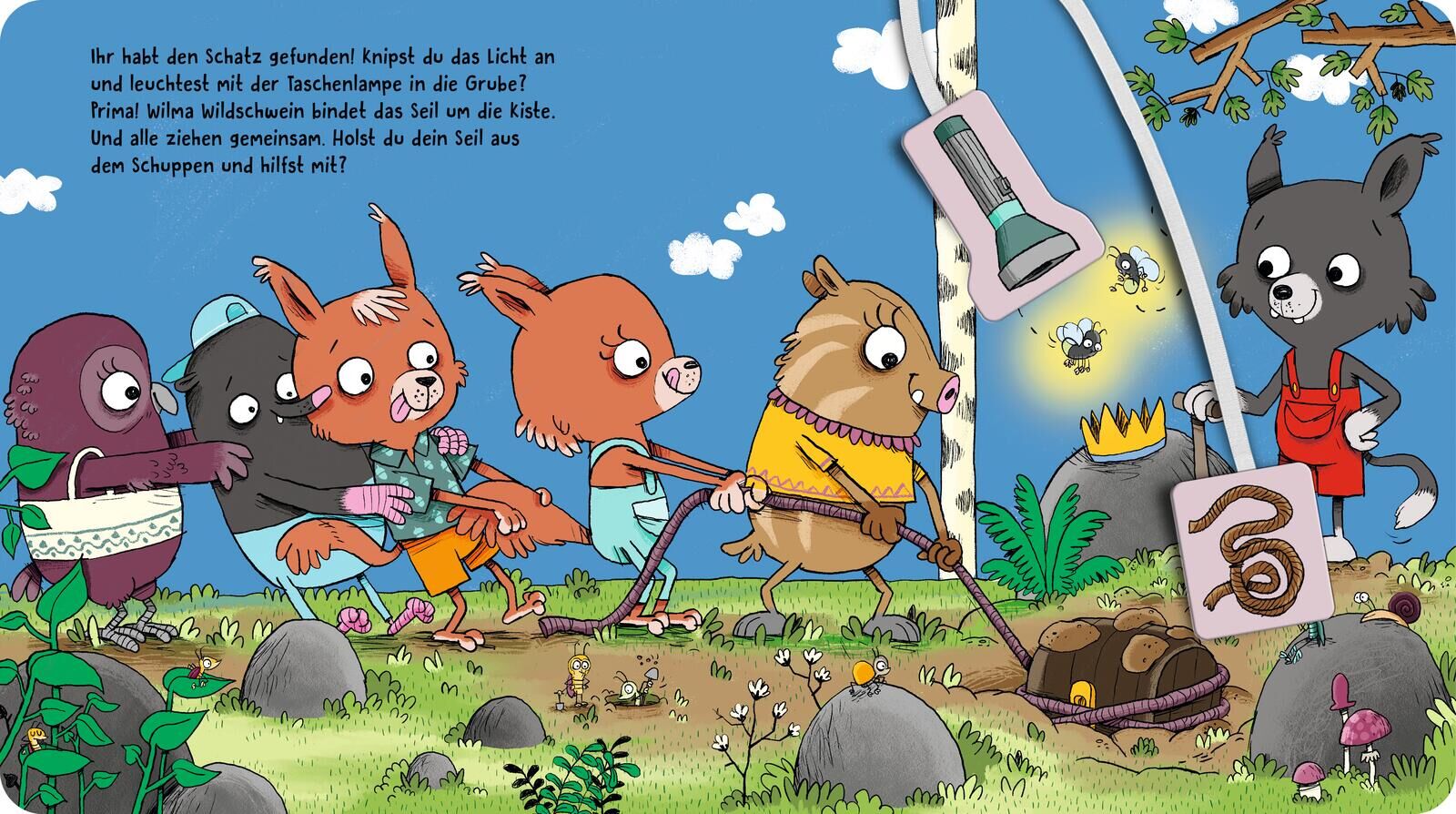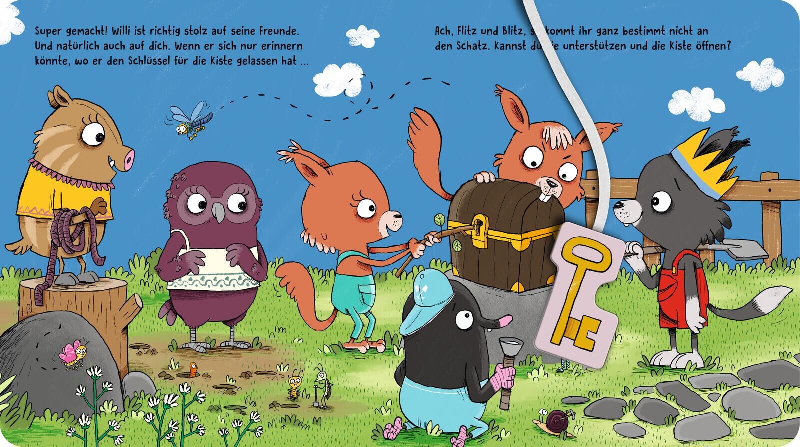 Tolle Mitmach-Pappe für kleine Abenteurer:innen mit 4 extra Werkzeugen zum Mitspielen! Zu Willis Geburtstag gibt es eine große Schatzsuche im Garten! Ida Igel und Ferdi Fuchs helfen eifrig mit. Und auch Kinder ab 3 Jahren unterstützen das Wölfchen mit den tol...