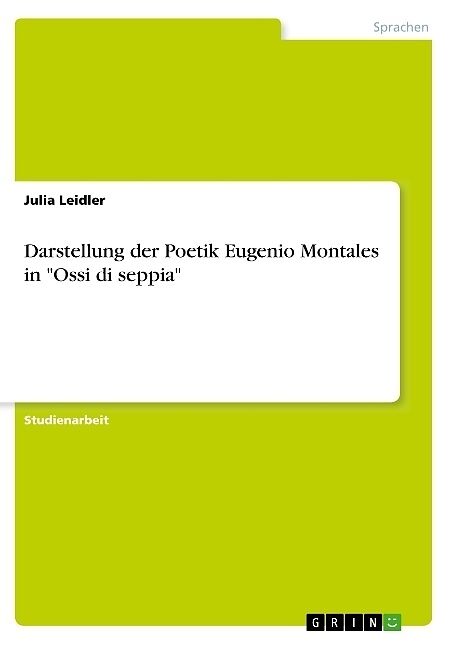 Studienarbeit aus dem Jahr 2013 im Fachbereich Romanistik - Italienische u. Sardische Sprache, Literatur, Landeskunde, Note: 2,0, Freie Universität Berlin, Sprache: Deutsch, Abstract: Eugenio Montale war einer der bedeutendsten Dichter des frühen 20. Jahrhunde...