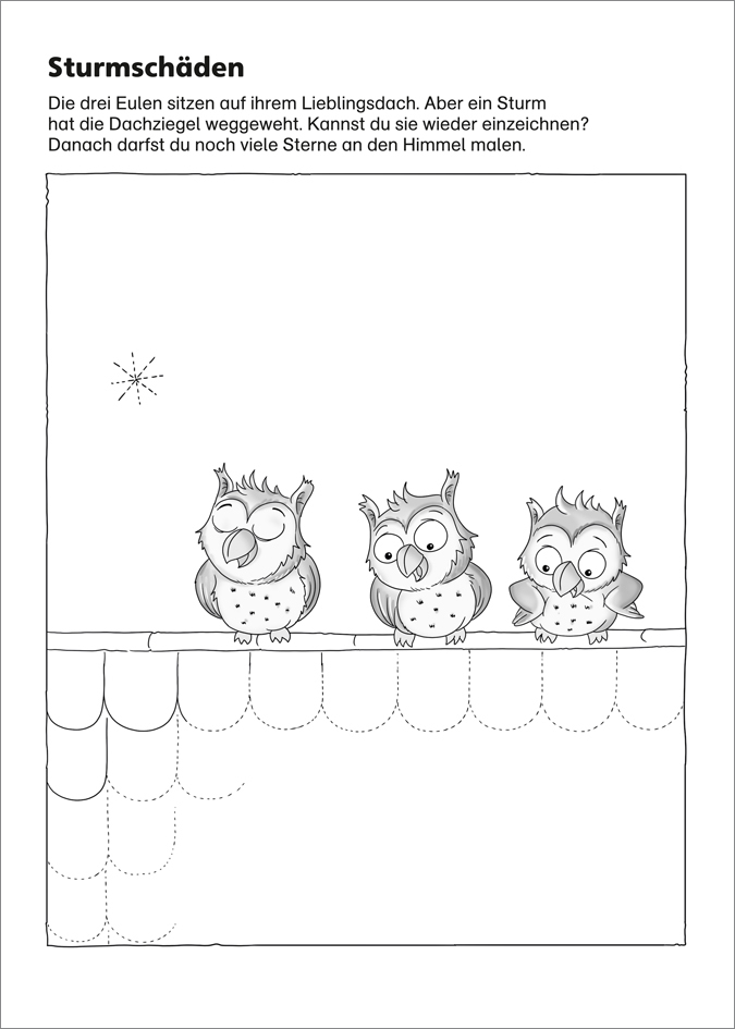 Die Eulenkinder Emma, Elsa und Ella haben jede Menge Rätselspaß für Vorschulkinder im Gepäck. Hier dürfen Kinder ausmalen, sich in Formen und Muster vertiefen, Schwünge nachspuren, erste Zahlen und Buchstaben kennenlernen, reimen, zählen, puzzeln kurzum alles ...