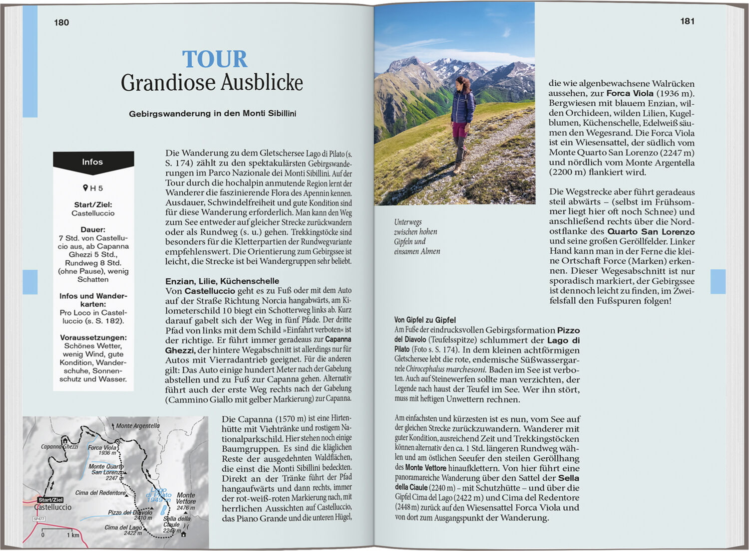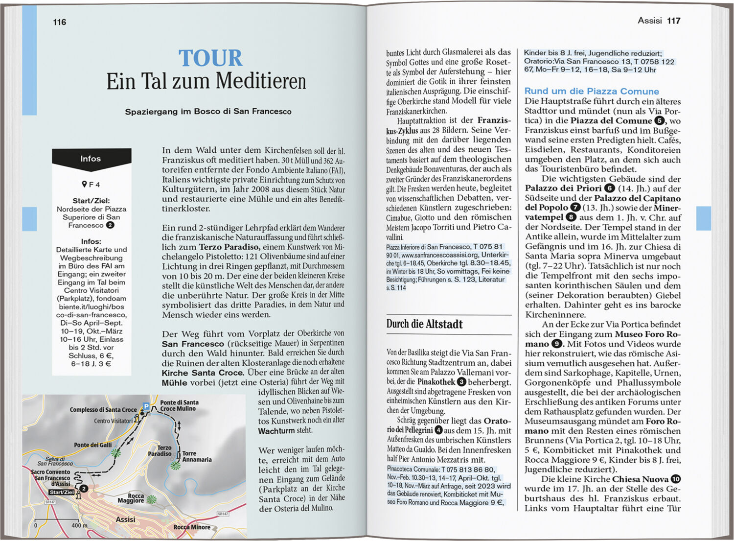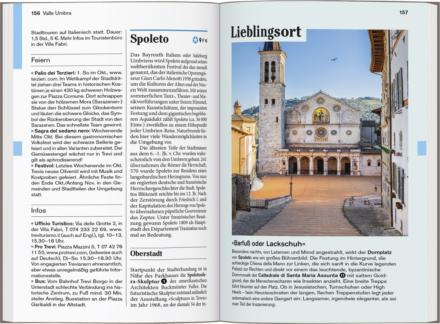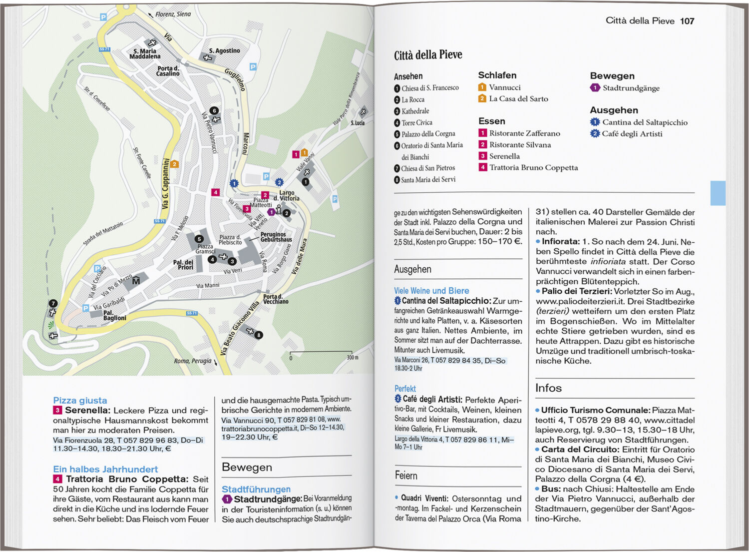 Senkrechtstarter, Überflieger, Querfeldein. Vor Ort die Kapitel: Perugia und Umgebung. Gubbio und der Norden. Lago Trasimeno. Assisi und Umgebung. Valle Umbra. Die Valnerina. Orvieto und Umgebung. Terni und der Süden. Das Kleingedruckte (Reiseinfos von A bis Z). Das Magazin. Offene Fragen.