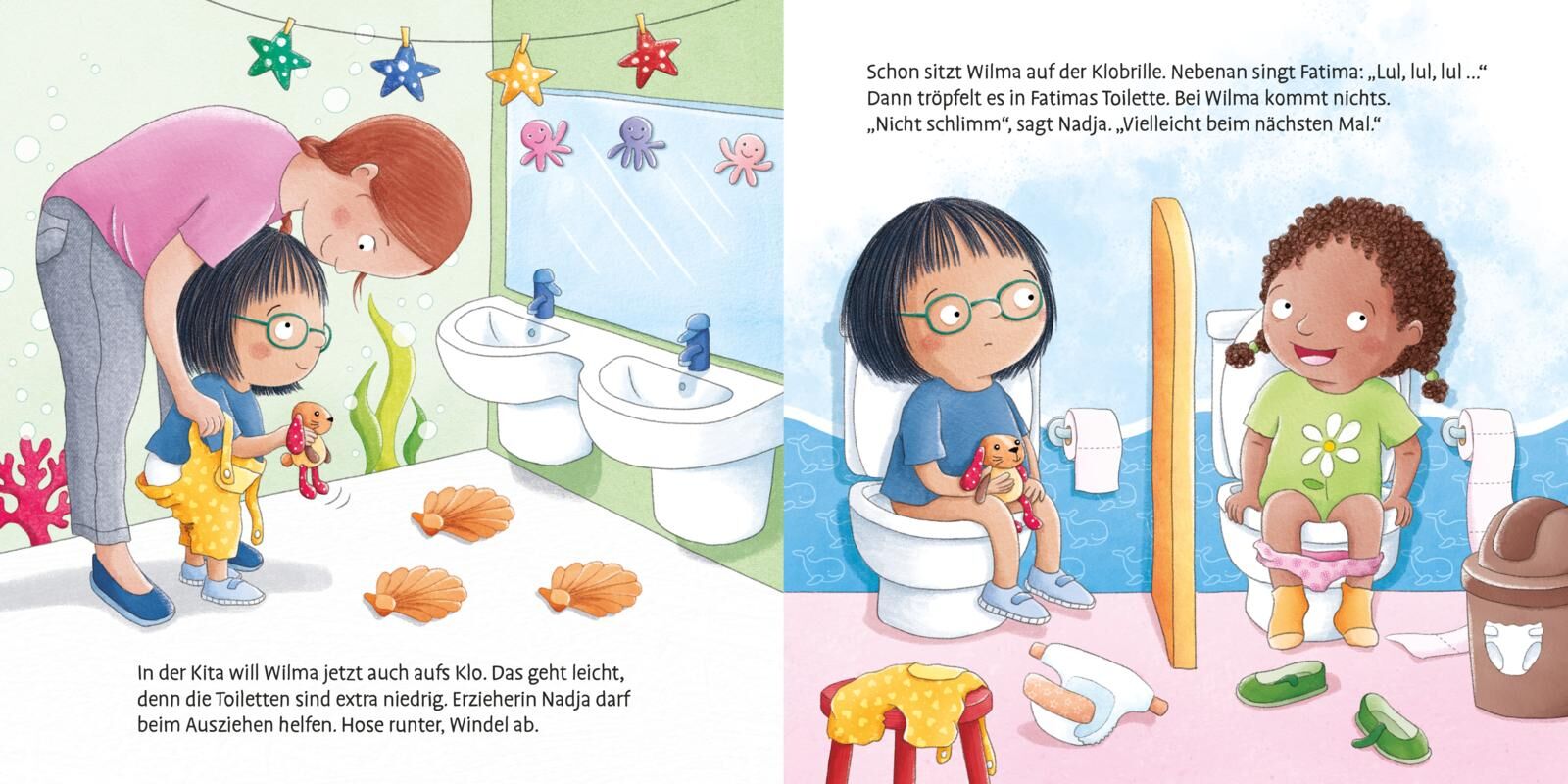 Ich kann schon allein aufs Klo! Realistisches Toilettentraining für Kleinkinder ohne Druck! Wilmas großer Bruder Louis war gerade auf der Toilette. Spannend! Jetzt will Wilma es auch versuchen. Erst probiert sie es in der Kita. Auf extra niedrigen Klos. Aber e...