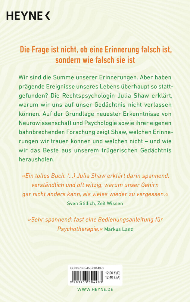 »Die Frage ist nicht, ob eine Erinnerung falsch ist, sondern wie falsch sie ist.« Julia Shaw Wir sind die Summe unserer Erinnerungen. Aber haben prägende Ereignisse unseres Lebens überhaupt so stattgefunden? Die Rechtspsychologin Julia Shaw erklärt, warum wir ...