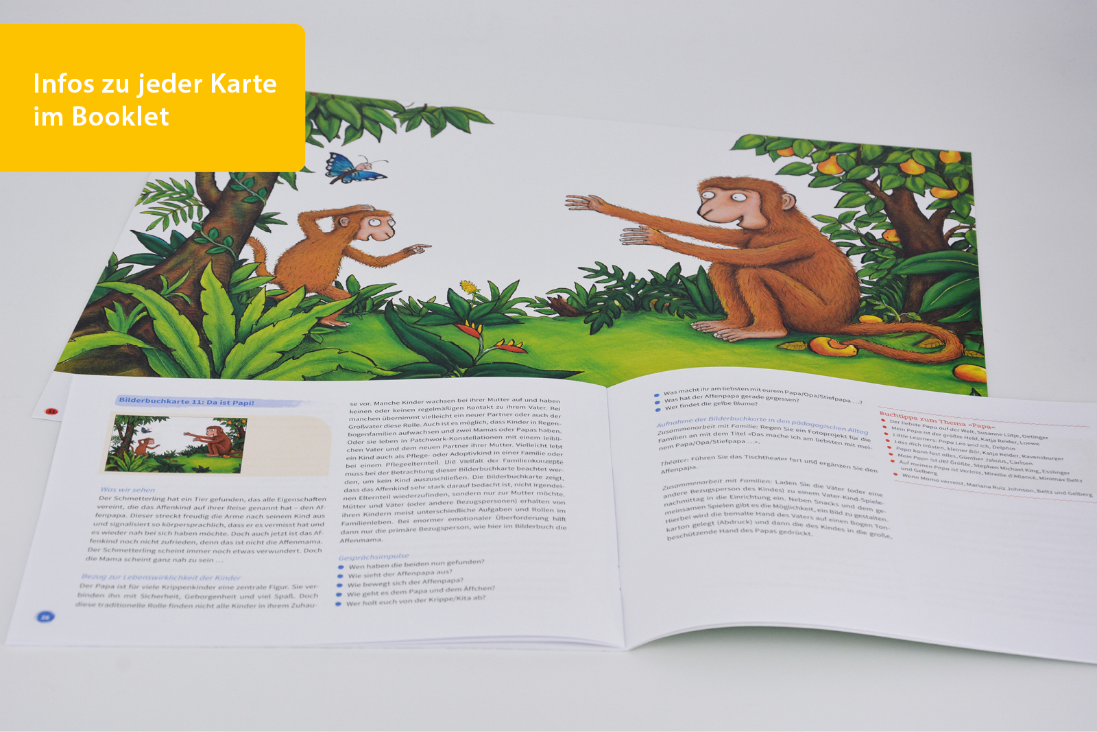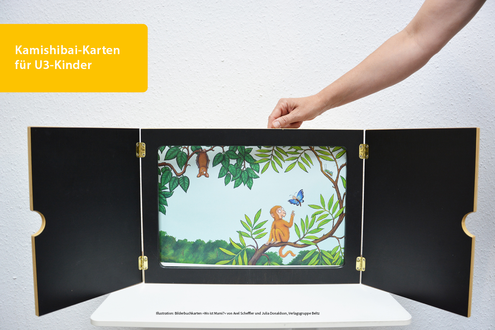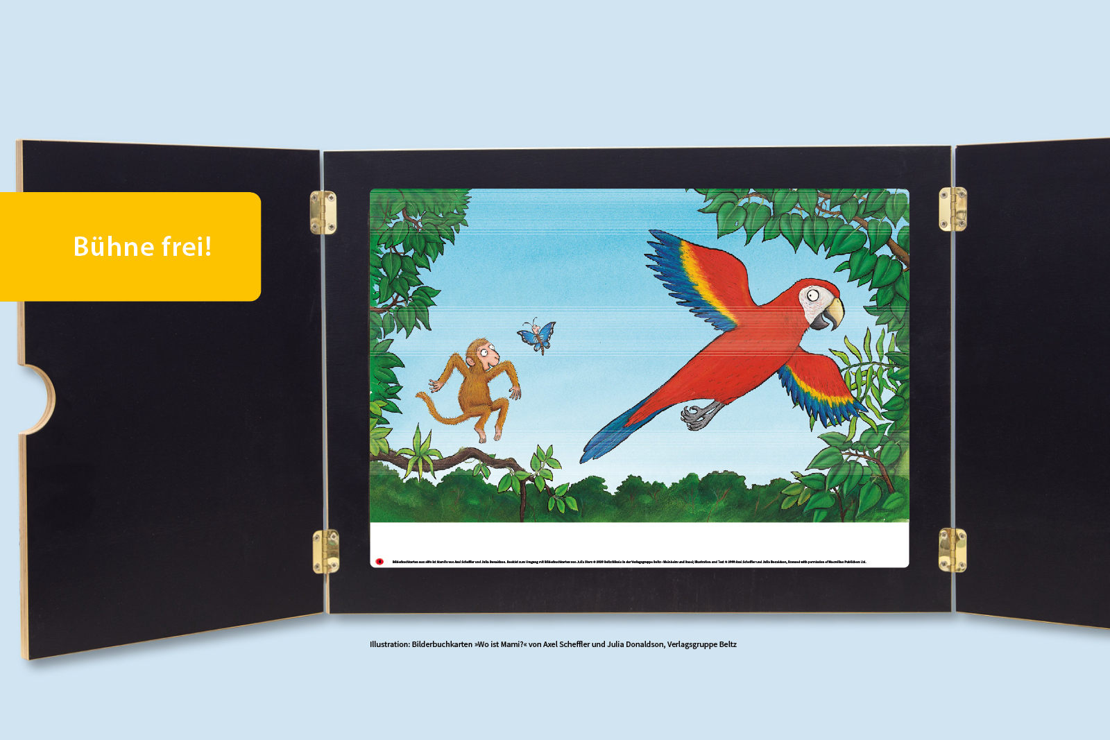 Der beliebte kleine Affe von Axel Scheffler und Julia Donaldson hat seine Mami verloren. Doch zum Glück hilft ihm der Schmetterling bei der Suche. Mit diesen Kamishibai-Karten geht es für die U3-Kinder auf eine Reise quer durch den Wald. Die großformatigen Bil...