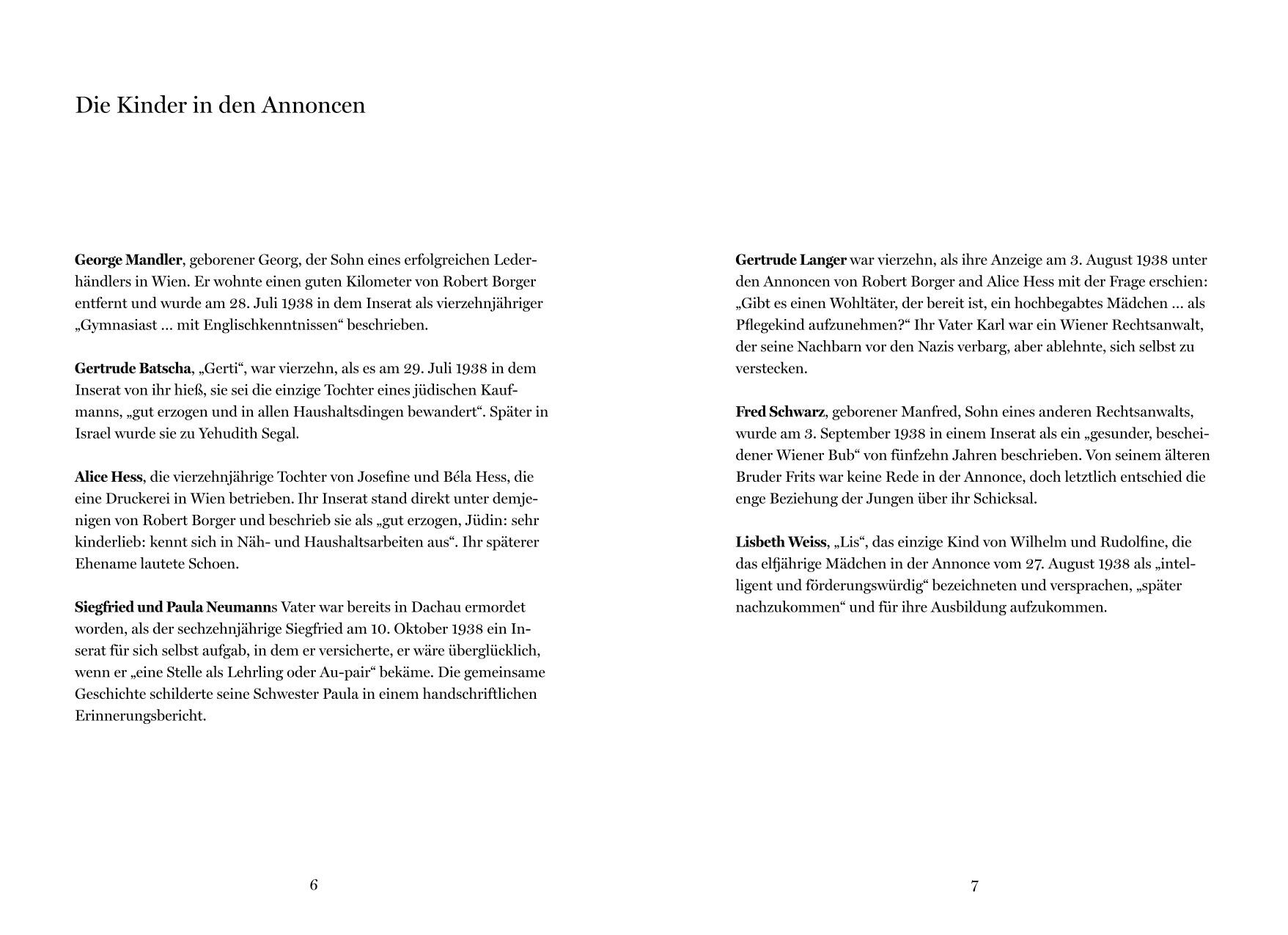Wien, 1938. Verzweifelt versuchen jüdische Eltern, ihre Kinder vor den Nazis in Sicherheit zu bringen. In ihrer Not schalten sie Kleinanzeigen im »Manchester Guardian«, in denen sie ihre eigenen Kinder ausschreiben, um ihnen ein Überleben in der Fremde zu sich...
