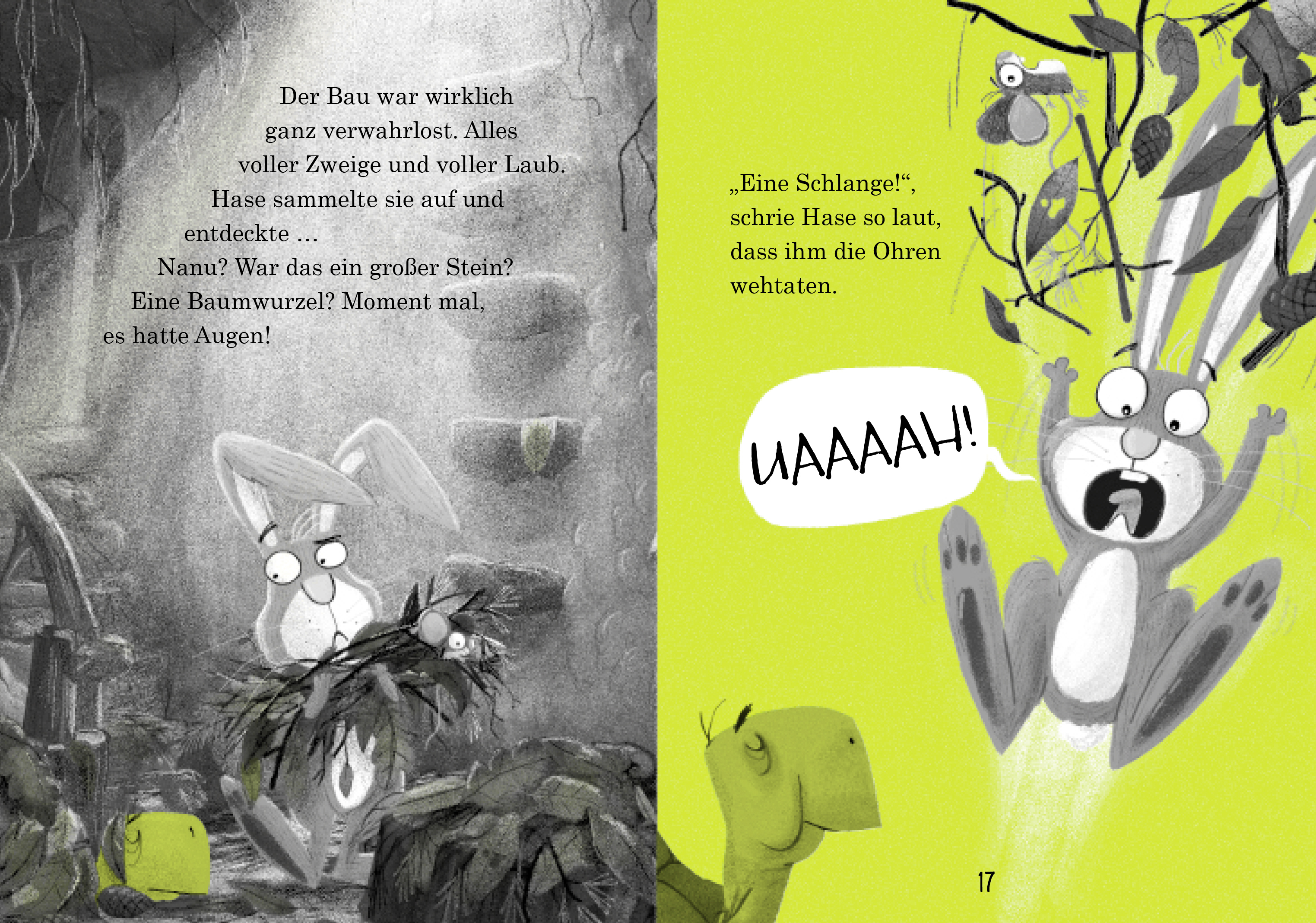 Eine tierisch humorvolle Geschichte zum ersten Selberlesen über die Freundschaft zweier Waldbewohner, ein bisschen Weisheit und jede Menge Lärm. Ruhe und Frieden das ist alles, was Hase sich wünscht. Doch Bär schnarcht furchtbar laut, Schildkröte erschreckt i...