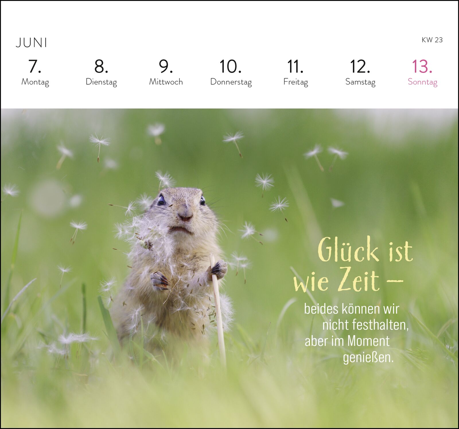Ein Stück vom Glück für 2027 Eine Extra-Portion Glück gefällig? Dieser Postkartenkalender erinnert mit seinen zuckersüßen Tierfotos von Maus, Eichhörnchen & Co. Tag für Tag daran, dass sich das große Glück manchmal auch in den kleinen Details versteckt. R...