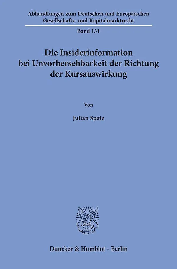 Die Untersuchung widmet sich der Analyse des Lafonta-Urteils des EuGH und hiermit der Frage, ob der Tatbestand der Insiderinformation die Vorhersehbarkeit der Richtung voraussetzt, in die sich der Kurs des betreffenden Finanzinstruments bei öffentlichem Bekann...