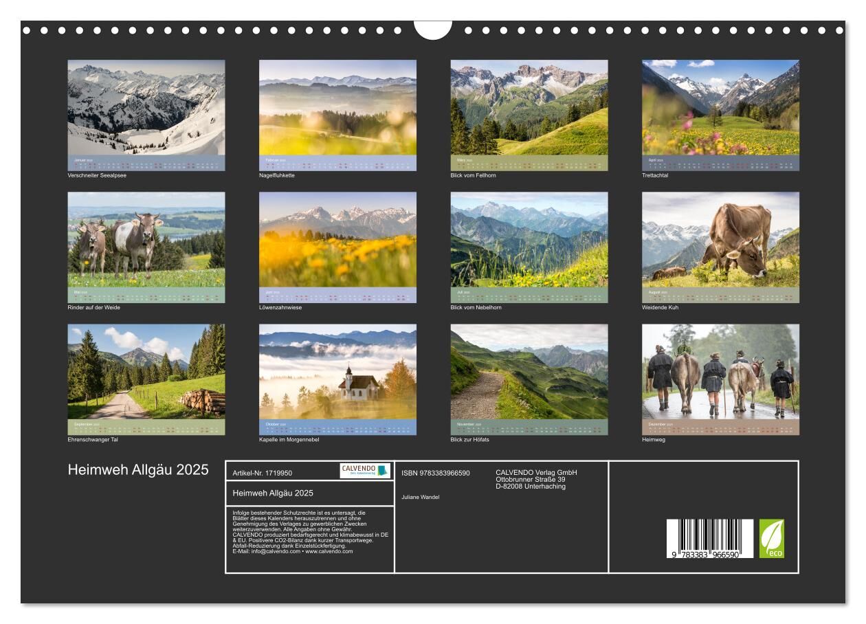 Wer im Allgäu leben darf nennt es Heimat, wer zu Besuch kommt, der kehrt meist gerne wieder. Geprägt von Tradition und Landwirtschaft zeigt sich die Allgäuer Landschaft zu jeder Jahreszeit grandios und liebenswert. Der Kalender zeigt in 13 Motiven Eindrücke vo...