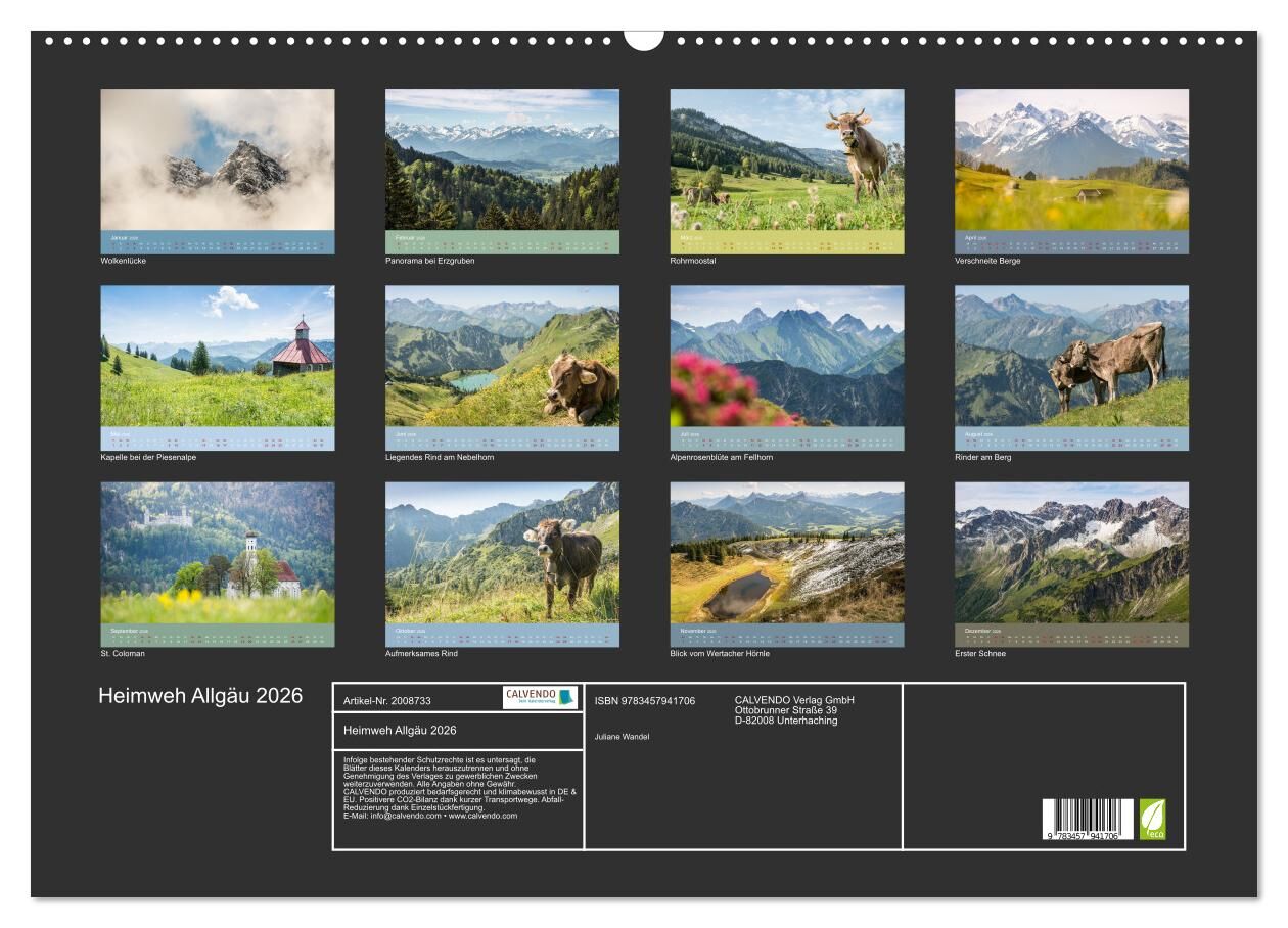 Wer im Allgäu leben darf nennt es Heimat, wer zu Besuch kommt, der kehrt meist gerne wieder. Geprägt von Tradition und Landwirtschaft zeigt sich die Allgäuer Landschaft zu jeder Jahreszeit grandios und liebenswert. Der Kalender zeigt in 13 Motiven Eindrücke vo...