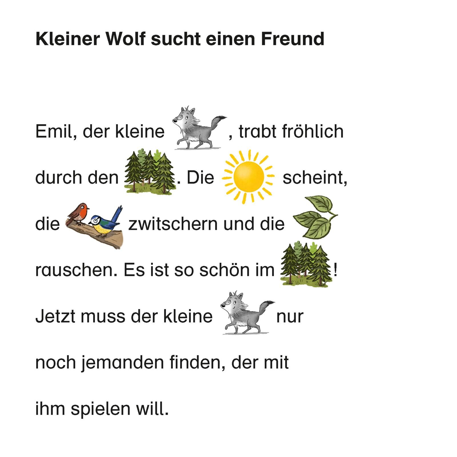 Spannende Bilderbuchgeschichten mit bunten Bild-Wörtern zum Lesenlernen Der kleine Wolf möchte so gerne spielen. Doch der Dachs schläft, der Fuchs ist nicht zu Hause und der Bär? Niemals! Auf keinen Fall will er mit dem Bären spielen. Bären sind gemein. Traur...