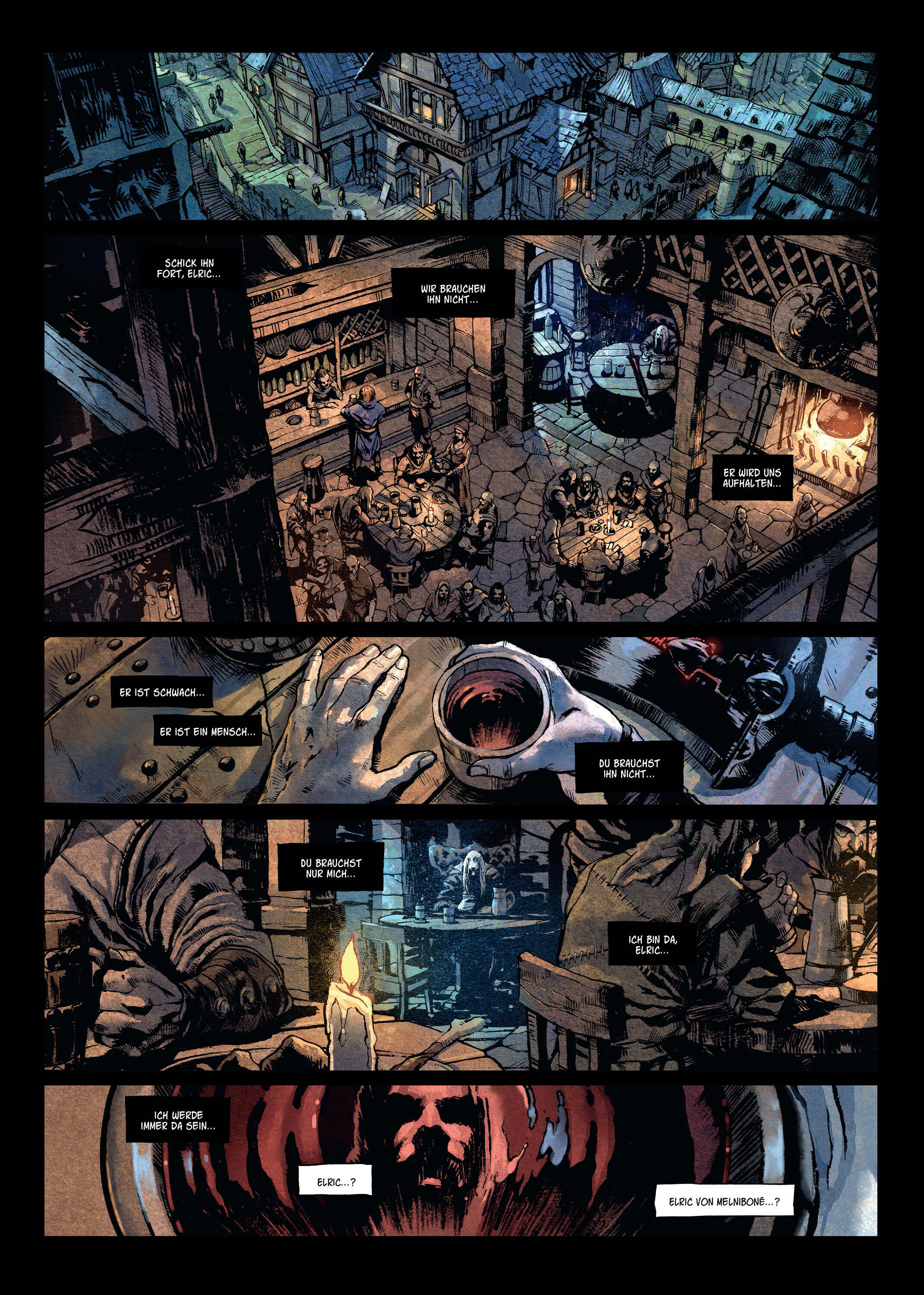 Der Dark-Fantasy-Mythos geht weiter! Nach der Zerstörung von Imrryr führt Elric, einst Herrscher von Melniboné, ein Leben als Söldner. Erst dem unbekümmerten Mondmatt gelingt es, ihn aus seiner Trübsal zu reißen. Gemeinsam machen sie sich auf den Weg nach Dhak...