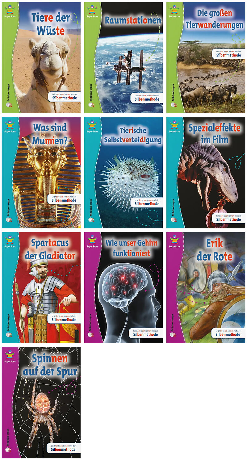Bezug nur noch einzeln möglich: Raumstationen; Tiere der Wüste; Die großen Tierwanderungen; Was sind Mumien?; Tierische Selbstverteidigung; Spezialeffekte im Film; Spartacus der Gladiator; Wie unser Gehirn funktioniert; Erik der Rote; Spinnen auf der Spur Die ...