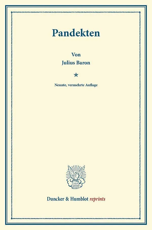 Die Pandekten sind eine Zusammenstellung aus Werken römischer Rechtsgelehrter, die ihren Ursprung in der Spätantike hat. Im 19. Jahrhundert wurden die Pandekten von deutschen Rechtsgelehrten systematisch ausgewertet. Es entstand ein eigene Disziplin innerhalb ...