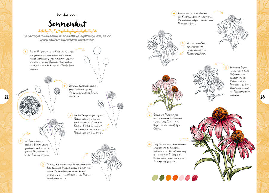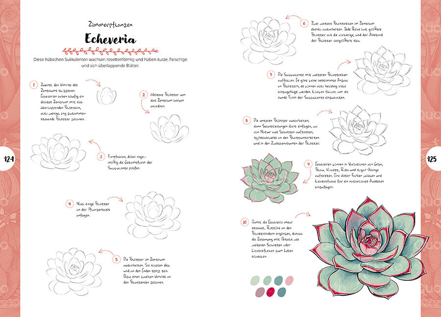 In nur 10 einfachen Schritten beeindruckende Pflanzen zeichnen Mit der 10 Steps-Reihe des Erfolgskonzeptes Die Kunst des Zeichnens gelingt Ihnen das ganz leicht! Jedes Motiv wird in einzelne Elemente zerlegt und beginnt mit einer ganz einfachen Grundform . An...