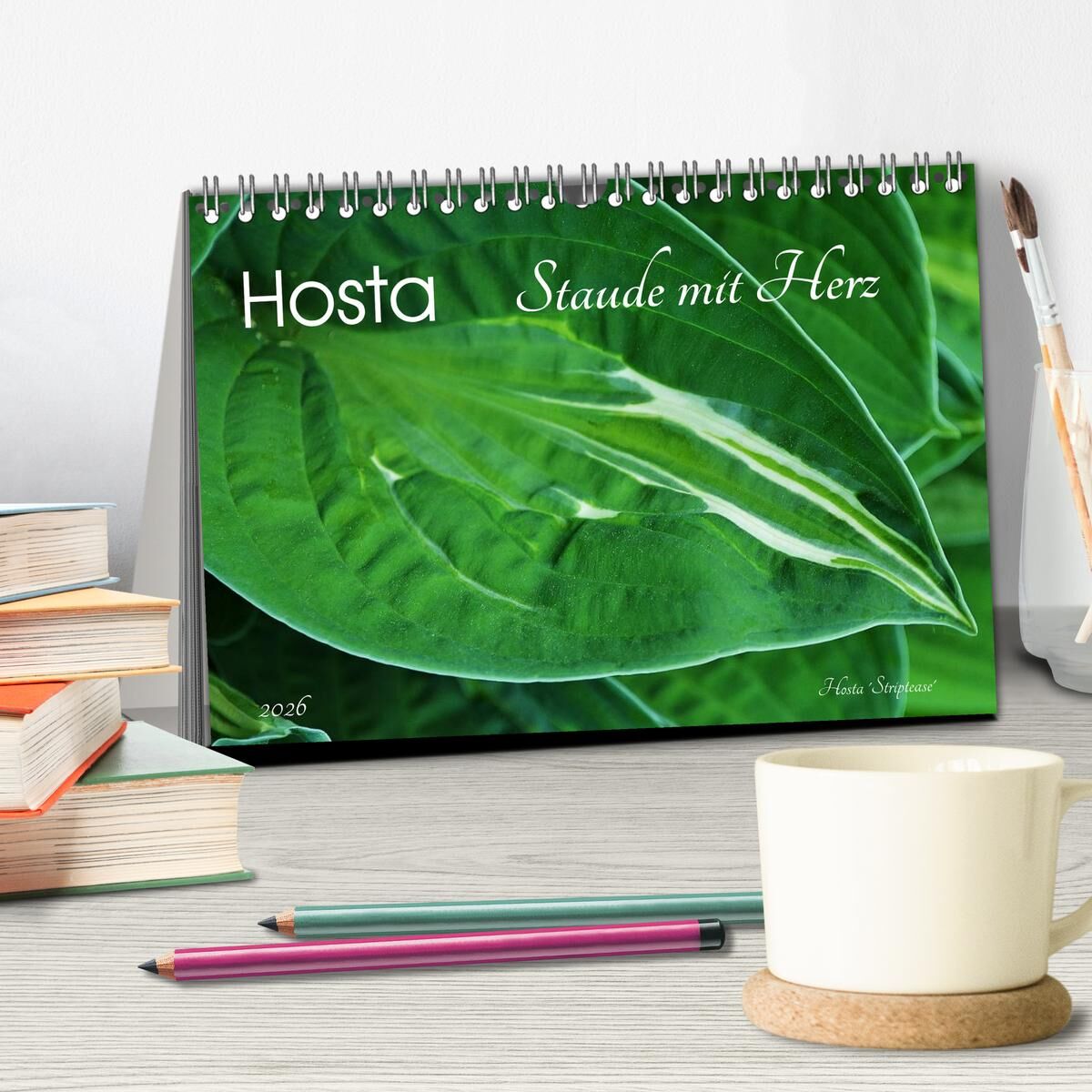 Hosta Staude mit Herz (Tischkalender 2026 DIN A5 quer), CALVENDO Monatskalender