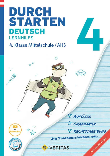 Durchstarten Deutsch. Lernhilfe hilft Lernschwächen in allen Kompetenz-Bereichen (Rechtschreibung, Grammatik und Aufsatzschreiben) der 4. Klasse Mittelschule (MS)/Gymnasium (AHS) zu beheben. Das Üben in kleinen Lernportionen fördert dabei den Wissenserwerb. Da...