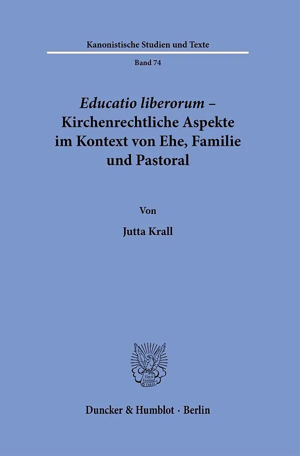 »Krall gelingt es, den teils schon geschehenen Paradigmenwechsel zugunsten der Rechtssphäre des Kindes ausgehend vom historischen Kontext bis hinein in das geltende Kirchenrecht darzustellen und weiter einzufordern. Der von der Autorin gewählte kanonische und historische Zugang zur educatio liberorum im Zusammenhang von Ehe, Familie und Pastoral weckt Interesse für Lesende aus interdisziplinären juristischen, historischen und theologischen Kontexten - und weit darüber hinaus.« Julia Adams, in: Zeitschrift für Kirchengeschichte, Bd. 134, 2/2023