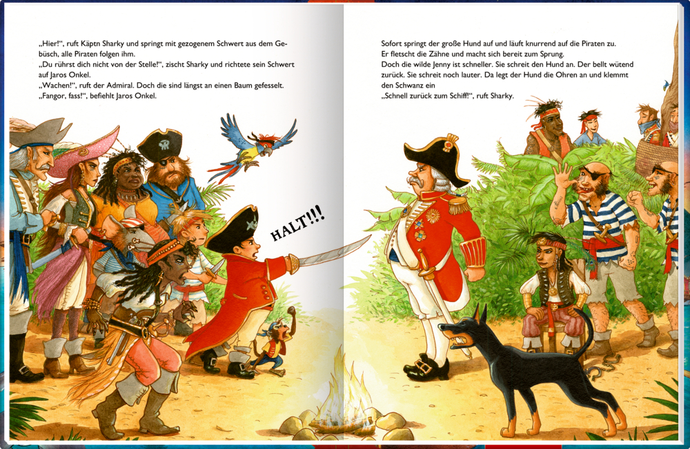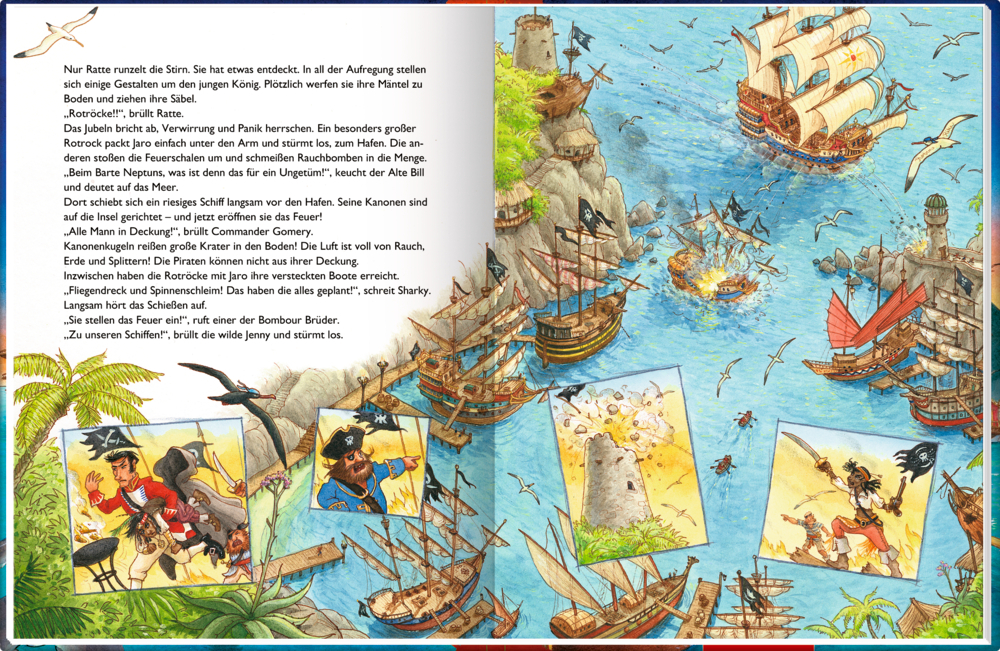 Auf der Pirateninsel ist ganz schön was los: Alle Piraten sind zusammengekommen, denn heute Abend soll der junge Jaro zum Piratenkönig gekrönt werden. Doch die Rotröcke machen ihnen einen gewaltigen Strich durch die Rechnung: Sie entführen Jaro und legen den g...