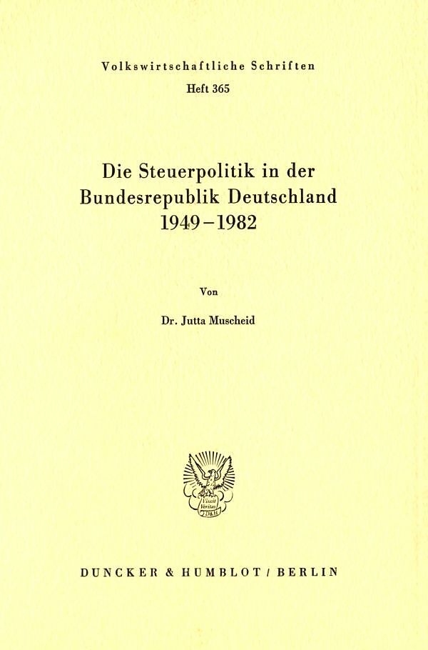 Die Steuerpolitik in der Bundesrepublik Deutschland 1949 - 1982.