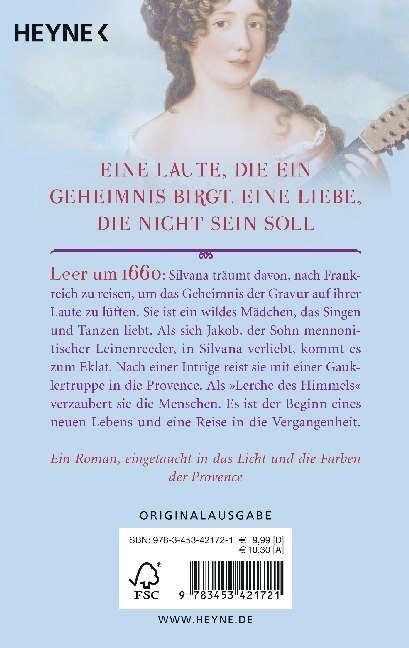 Ein Roman, eingetaucht in das Licht und die Farben der Provence Leer um 1660: Silvana träumt davon, nach Frankreich zu reisen, um das Geheimnis der Gravur auf ihrer Laute zu lüften. Sie ist ein wildes Mädchen, das singen und tanzen liebt sehr zum Leidwesen der...