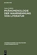 Keine ausführliche Beschreibung für "Phänomenologie der Wahrnehmung von Literatur" verfügbar. Klappentext Die Buchreihe Untersuchungen zur deutschen Literaturgeschichte deckt das gesamte Spektrum der germanistischen Literaturforschung ab und umfasst ...