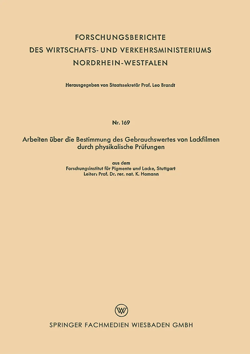 Arbeiten über die Bestimmung des Gebrauchswertes von Lackfilmen durch physikalische Prüfungen