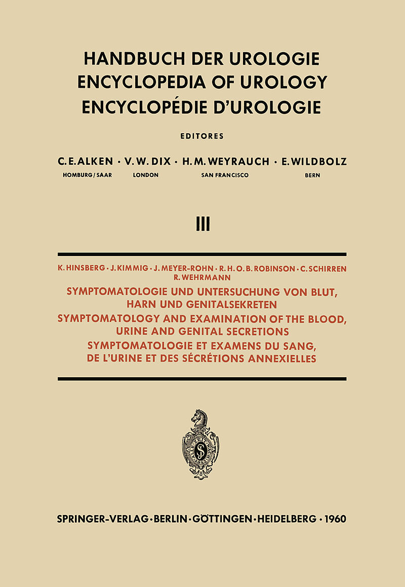 Inhalt Contents.- The significance of abnormality of the volume and of the composition of the urine.- A. Variations in the quality and quantity of the urine.- B. Clinical examination of the urine.- References.- Die Untersuchung des Urins.- Die Urininhaltstoffe...