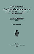 Die Theorie der Gewichtsstaumauern unter Rücksicht auf die neueren Ergebnisse der Festigkeitslehre