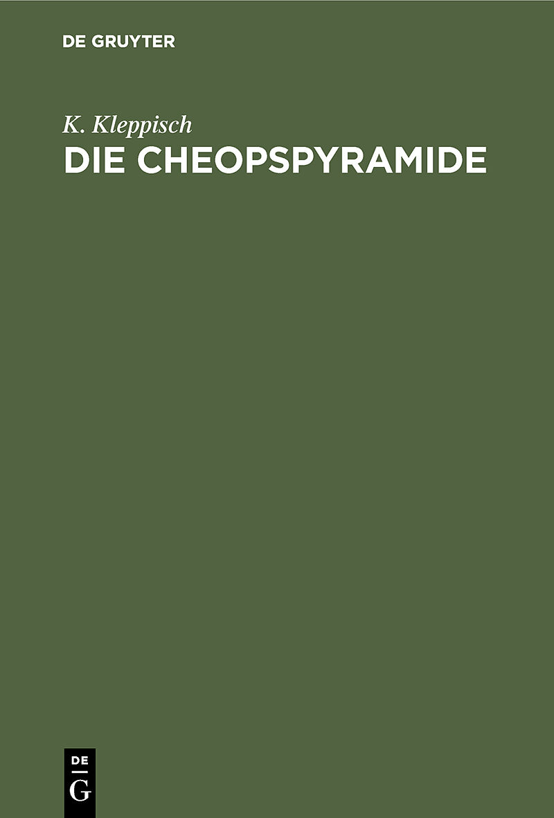 Frontmatter -- Vorwort -- Inhalt -- Schnitt durch die Cheopspyramlde -- I. Die wesentlichsten Theorien über das Maßverhältnis der Cheopspyramide -- II. Der leitende Baugrundsatz - eine einfache mathematische Erkenntnis -- Backmatter