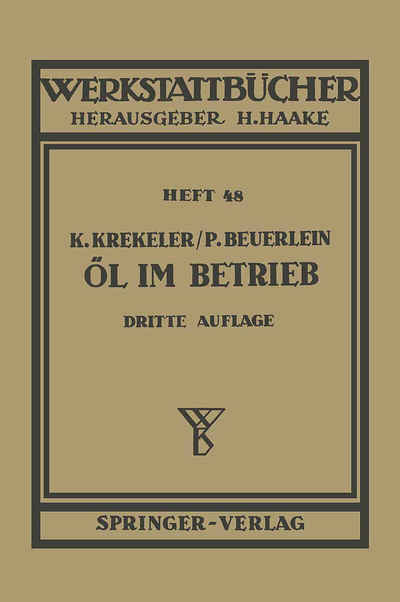 Einteilung der Öle und Fette.- Prüfung und Untersuchung der Schmierstoffe.- Schmierung der Maschinen im Betrieb.- Öle für spanabhebende und spanlose Formung.- Öle für die Härterei.- Ölpflege im Betrieb.
