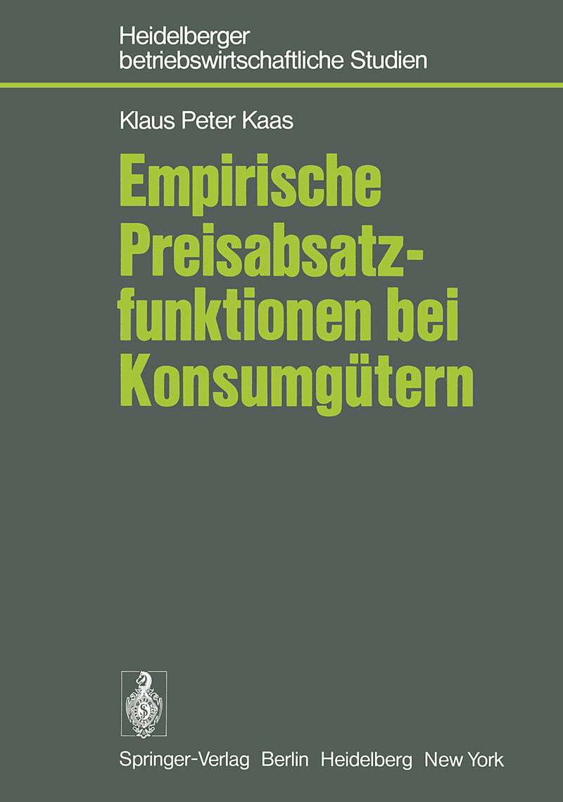 Inhalt Erster Teil: Theoretische Grundlagen.- I. Das Modell der Preisabsatzfunktion.- II. Probleme einer empirischen Ermittlung von Preisabsatzfunktionen.- III. Die vorliegenden empirischen Befunde zur Preisabsatzfunktion.- IV. Ein probabilistisches Modell der...