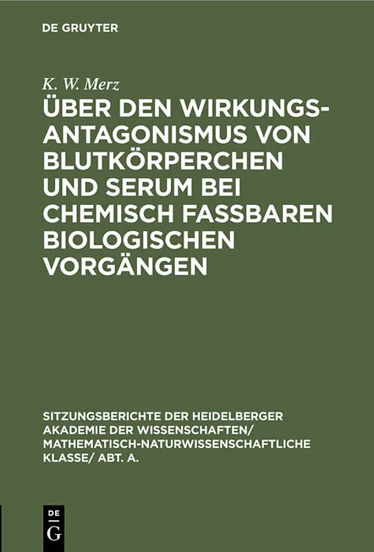 Keine ausführliche Beschreibung für "Über den Wirkungsantagonismus von Blutkörperchen und Serum bei chemisch faßbaren biologischen Vorgängen" verfügbar. Inhalt Frontmatter -- Einleitung -- Experimenteller Teil. I. Versuche Uber Arginasehemmung -- Exp...