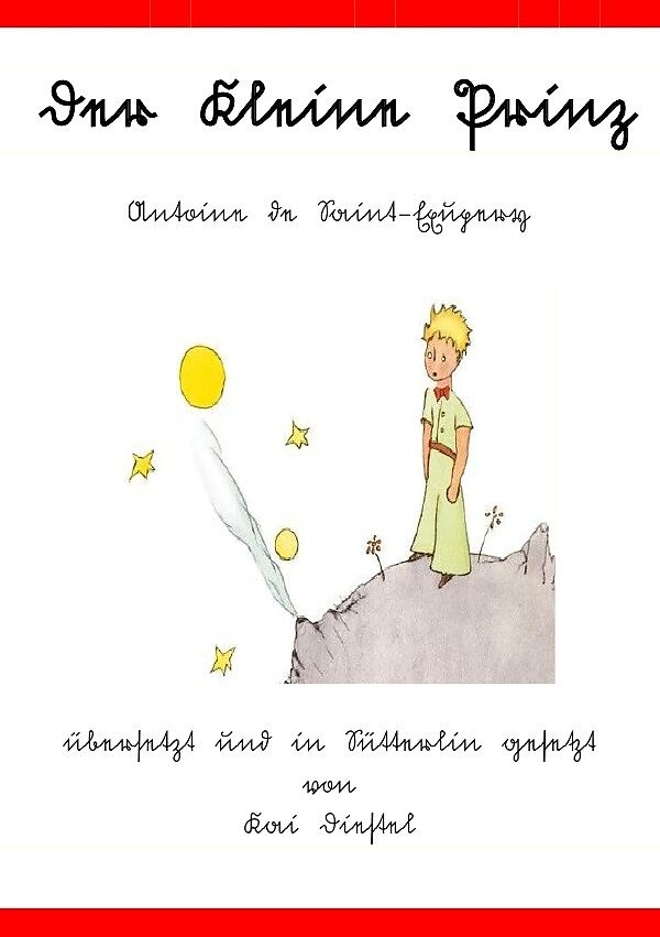 Sütterlinausgabe der Geschichte des kleinen Prinzen von Antoine de Saint-Exupéry. In diesem Buch ist die Geschichte des kleinen Prinzen in der sogenannten Sütterlinschrift, einer Variante der deutschen Schreibschrift, die, nach ihrem Schöpfer, dem Berliner Gra...