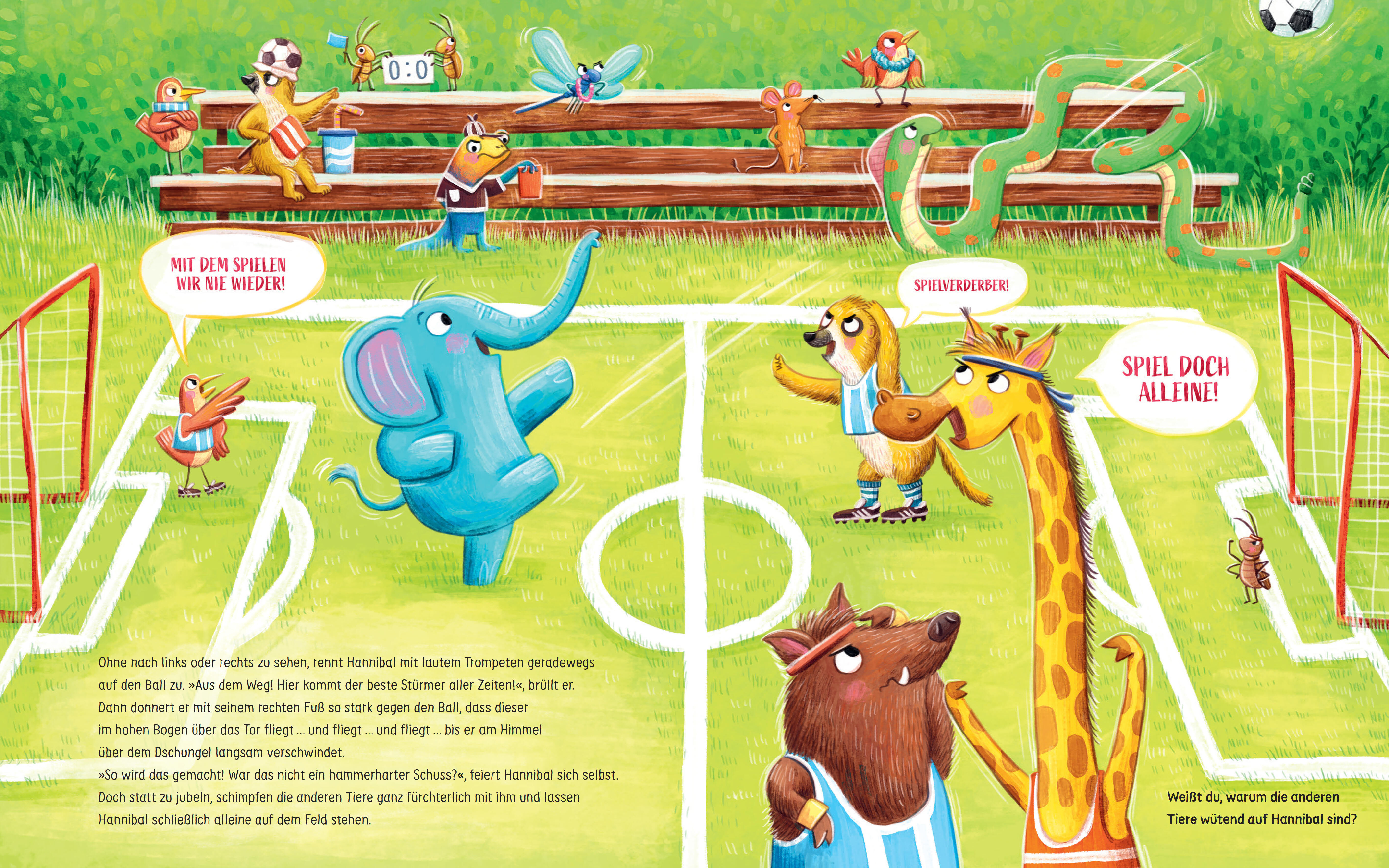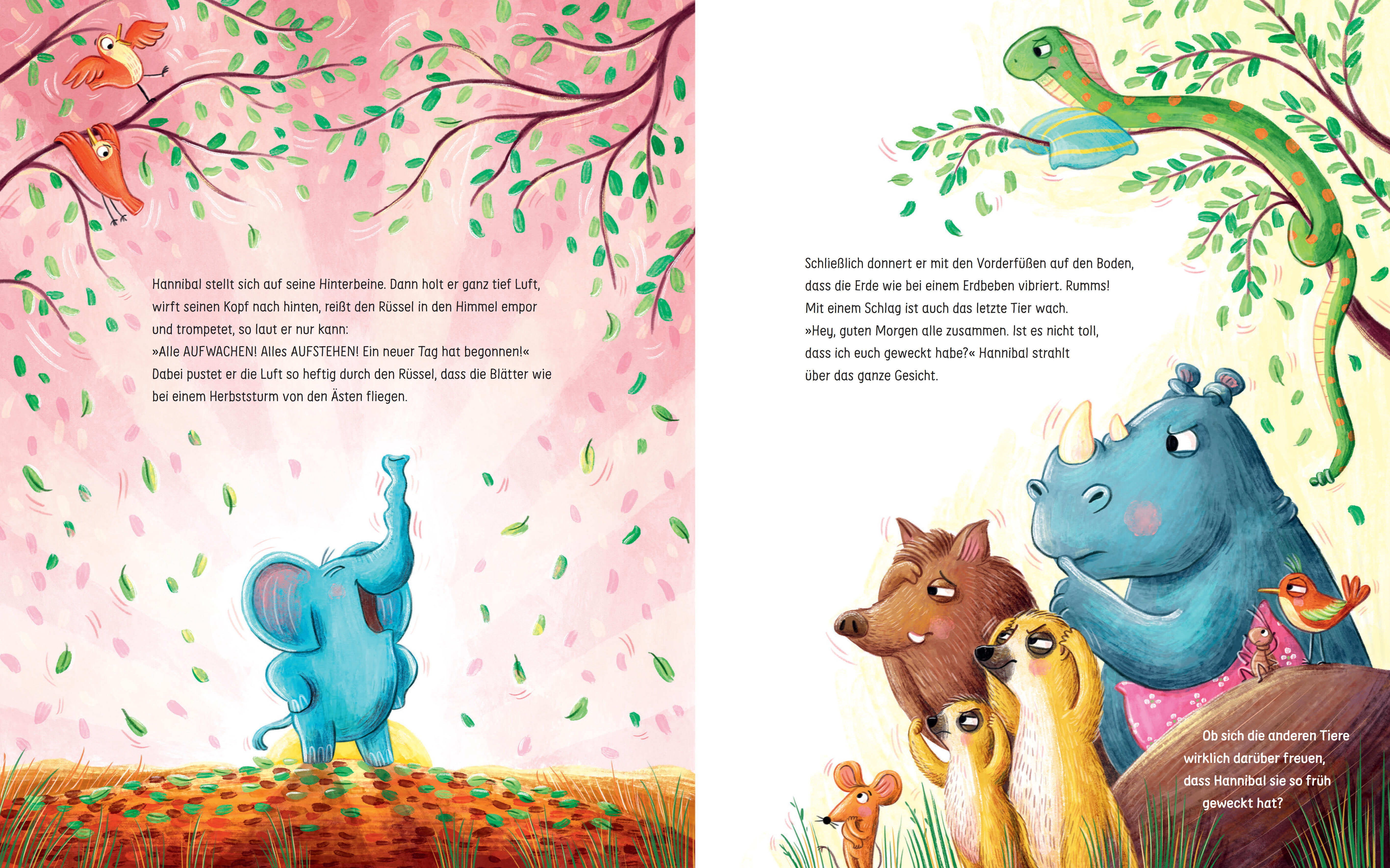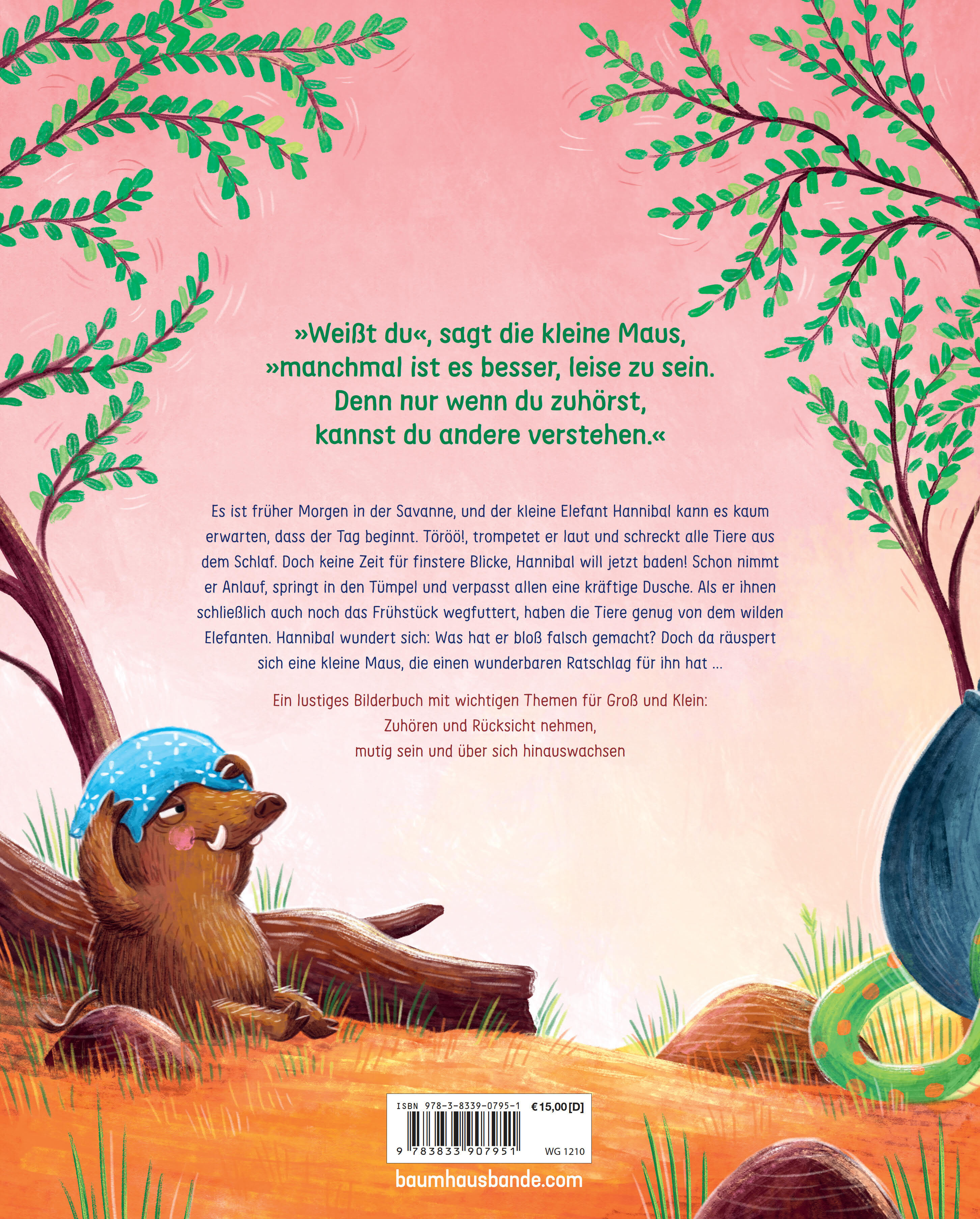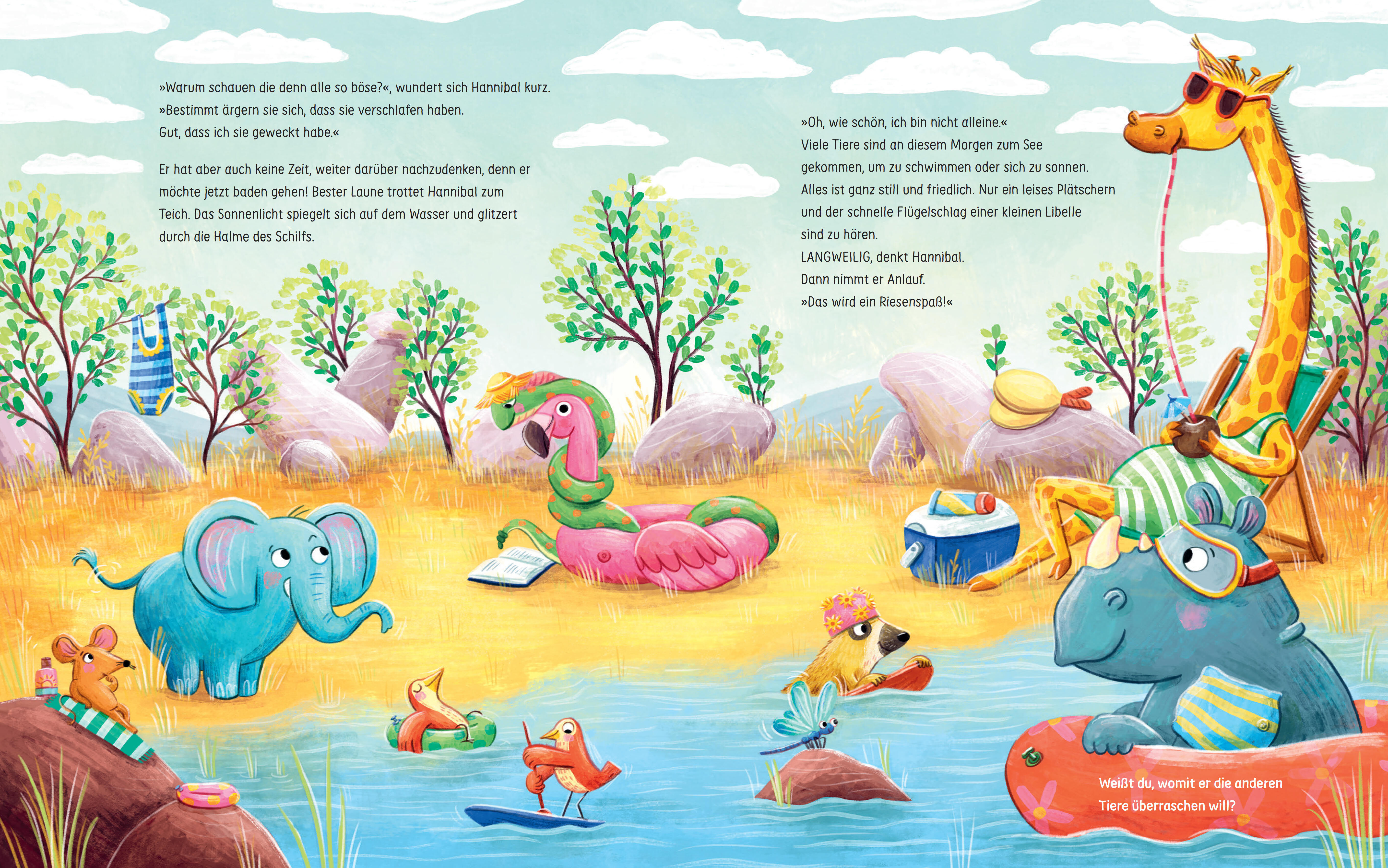 Es ist früher Morgen in der Savanne. Mit einem lauten Töröö! schreckt der Elefantenjunge Hannibal alle Tiere aus dem Schlaf. Doch keine Zeit für finstere Blicke, Hannibal will jetzt baden! Schon nimmt er Anlauf, springt in den Tümpel und verpasst allen eine k...