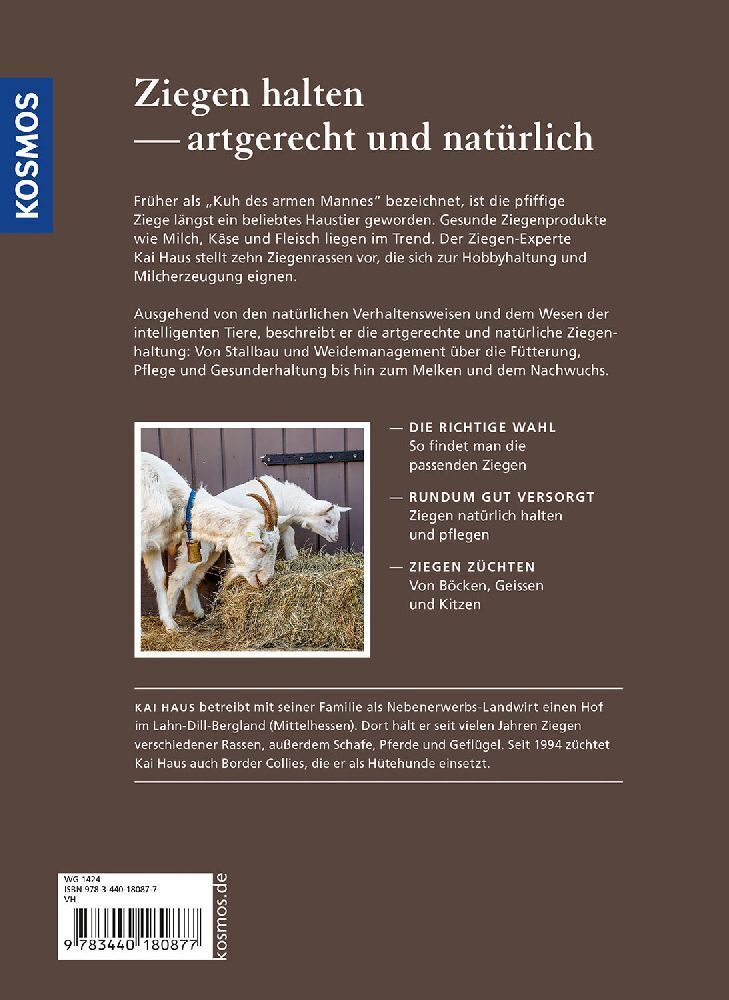 Der Ziegen-Experte Kai Haus stellt 10 Ziegenrassen vor, die sich zur Hobbyhaltung und Milcherzeugung eignen. Ausgehend von ihren natürlichen Verhaltensweisen beschreibt er die artgerechte Haltung in Stall und Freiland und informiert über Ernährung, Krankheitsv...