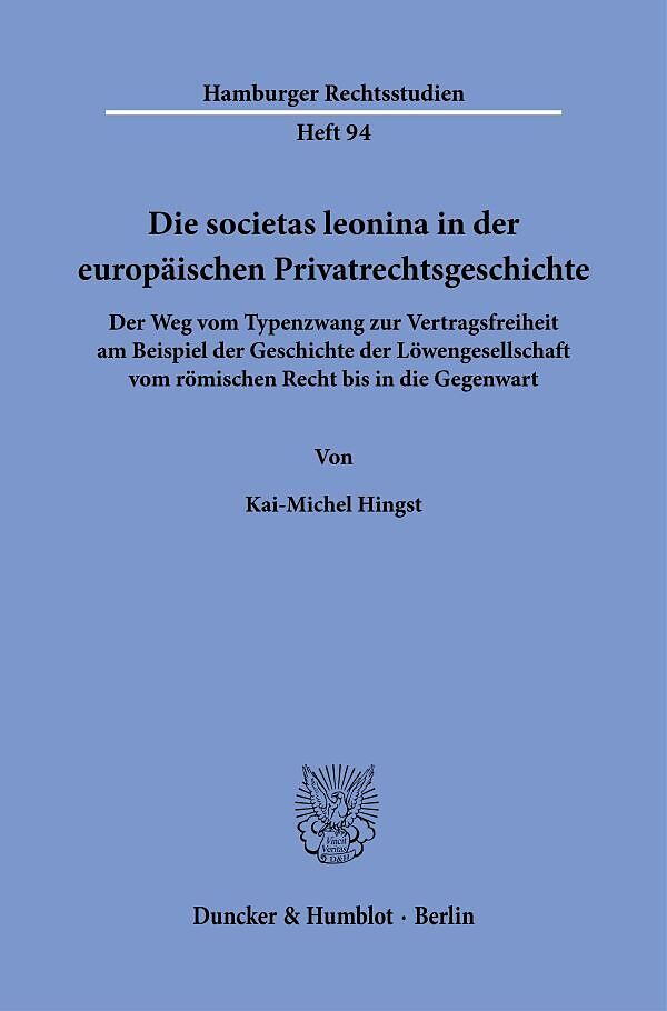 Das Thema der Untersuchung ist die Entwicklungsgeschichte der societas leonina (Löwengesellschaft), eines gesellschaftsrechtlichen Instituts, das seinen Ursprung im antiken römischen Recht hat. Seinen Namen verdankt es der Fabel von der Jagdgesellschaft des Lö...