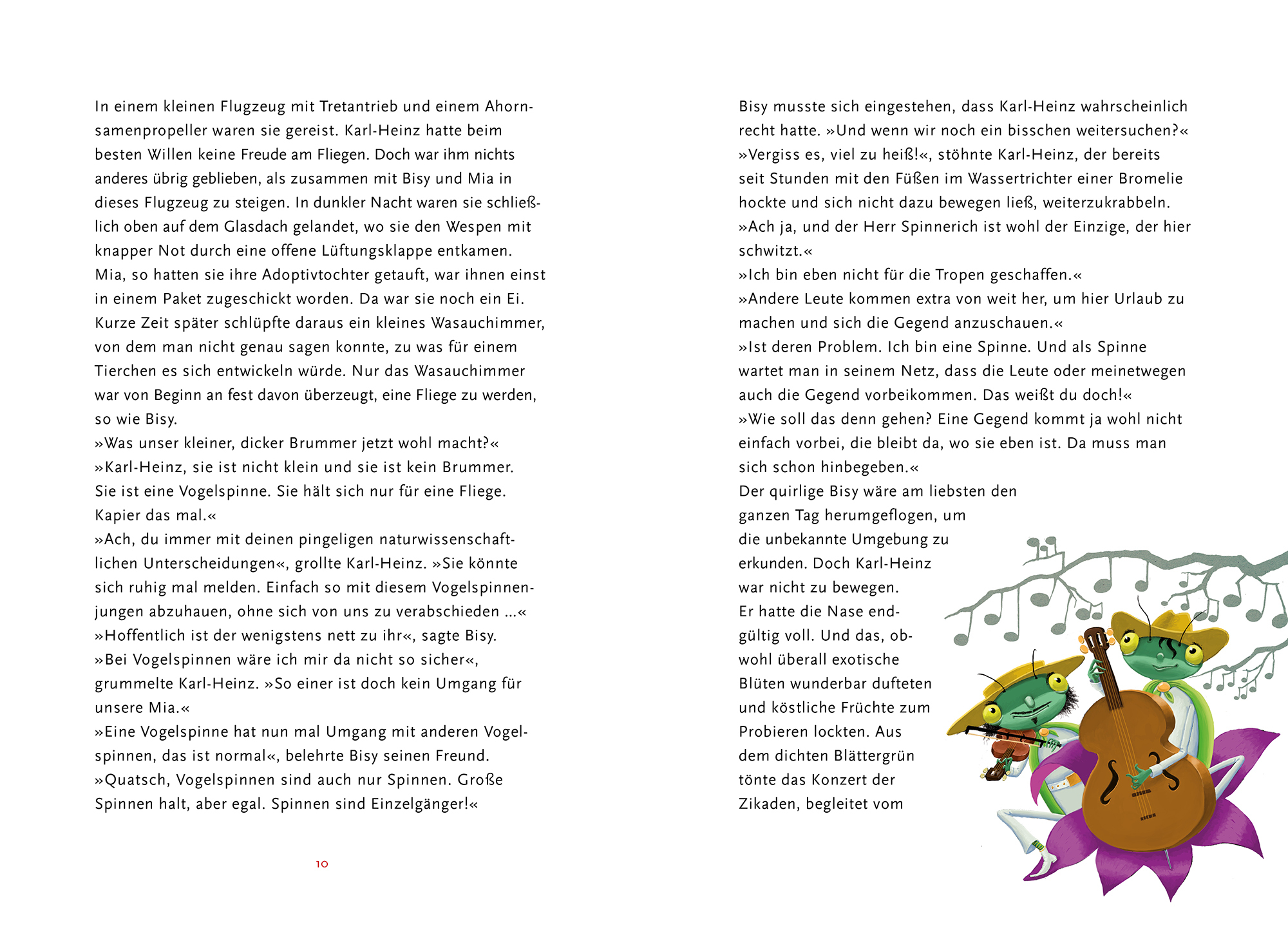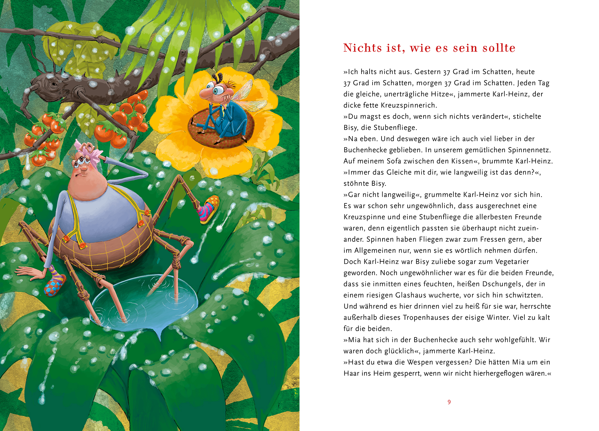 "Puh, ist das heiß hier! Und mitten im Dschungel den perfekten Platz für ein neues Netz zu finden, ist für Kreuzspinne Karl-Heinz und Stubenfliege Bisy auch keine einfache Aufgabe. Ihre Adoptivtocher, die Vogelspinne Mia, ist ihrer eigenen Wege gegangen und nu...