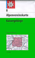Topographische Karte 1:25.000, mehrfarbig, mit Wegmarkierungen, Skirouten, Bushaltestellen, Schummerung, Felszeichnung, Gletscherdarstellung, Kennzeichnung der Klettersteige, UTM-Gitter. Gebiet: Wilder Kaiser, Zahmer Kaiser, zwischen Kufstein, Walchsee, Griese...