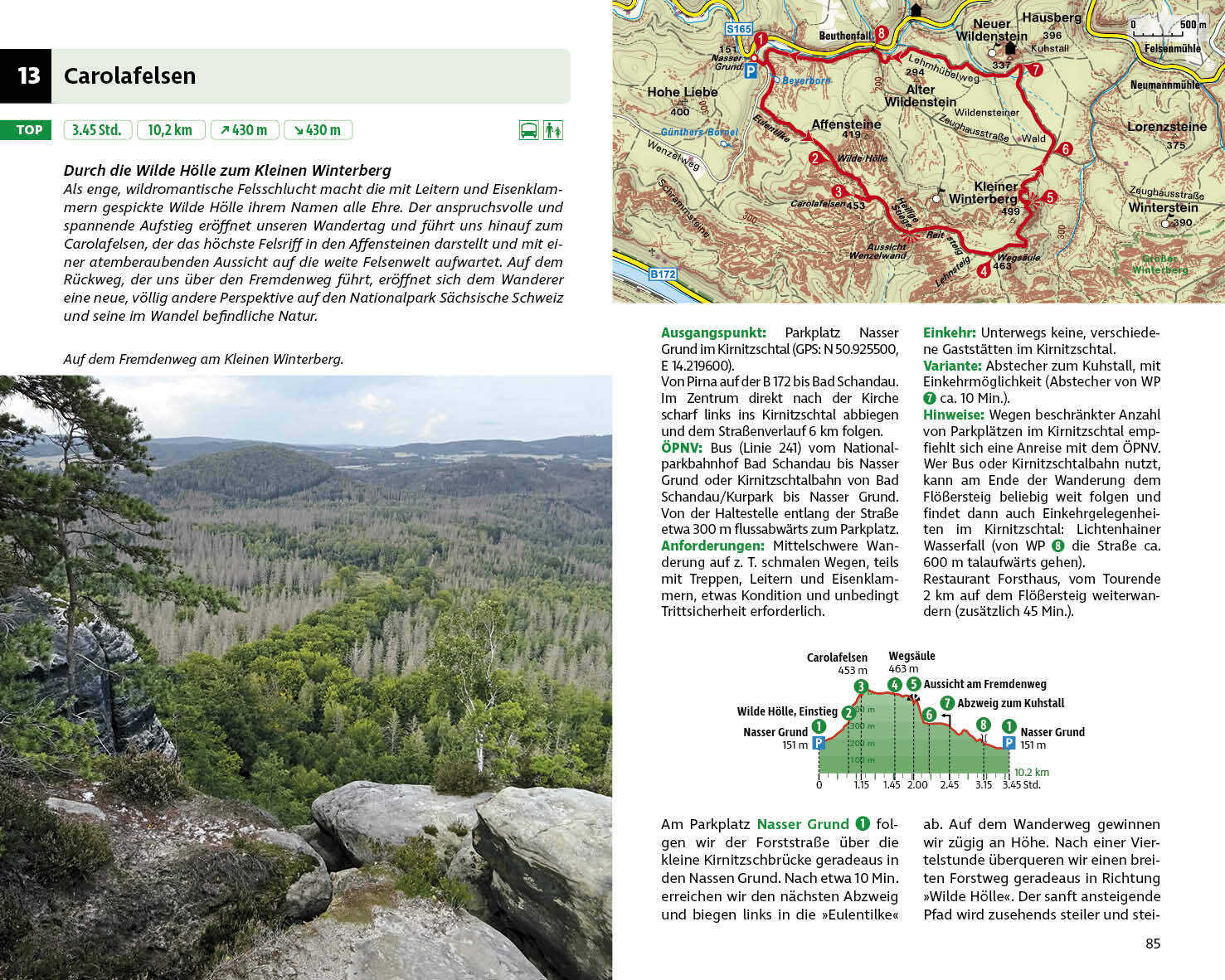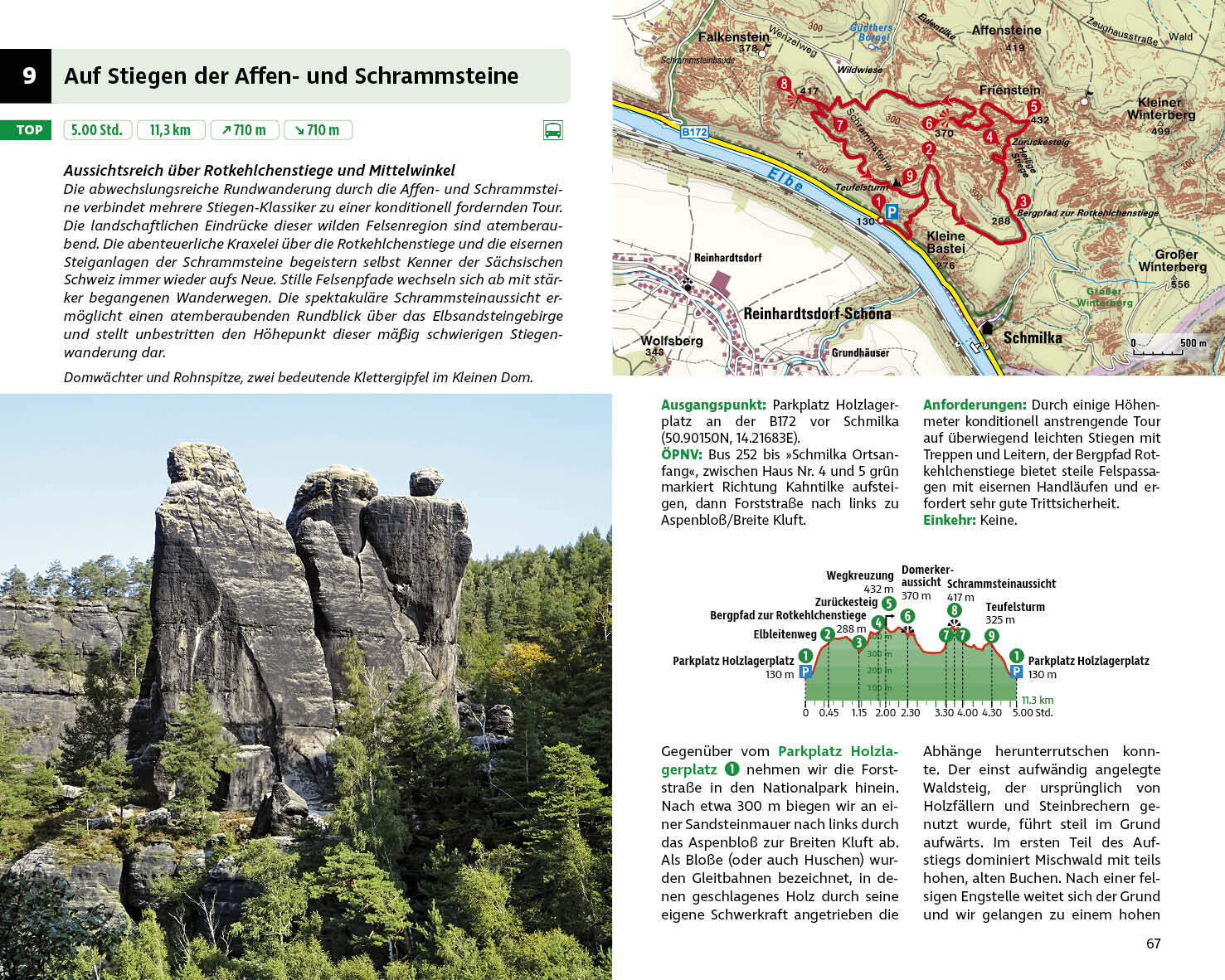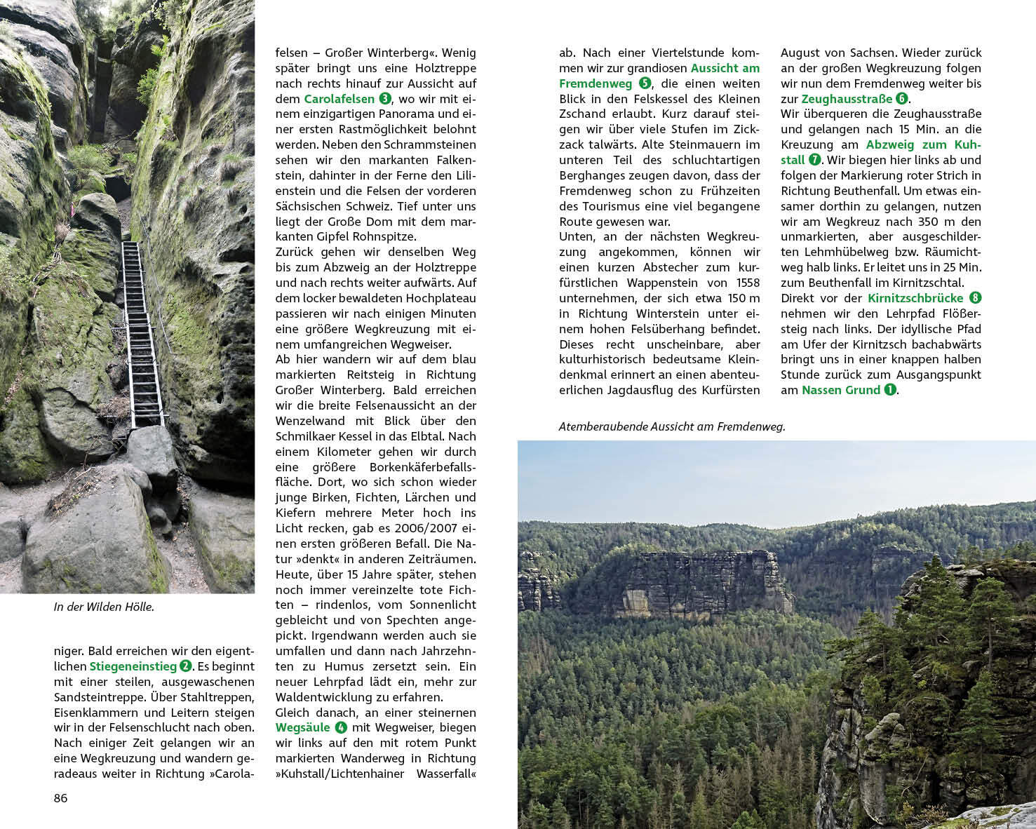 Das Elbsandsteingebirge mit seiner wildromantischen Felsenwelt über dem Elbtal ist eines der schönsten Wandergebiete Deutschlands. Hohe Sandsteintürme, kühle Schluchten, klobige Tafelberge, weite Wälder und luftige Aussichtsfelsen ziehen Wanderer in ihren Bann...