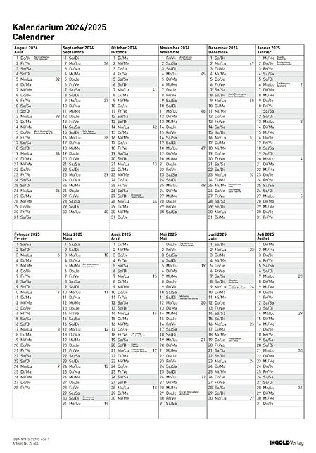 Ein Loseblatt-Kalendarium für das Schuljahr 2024/25. Die Rückseite ist selbstklebend.