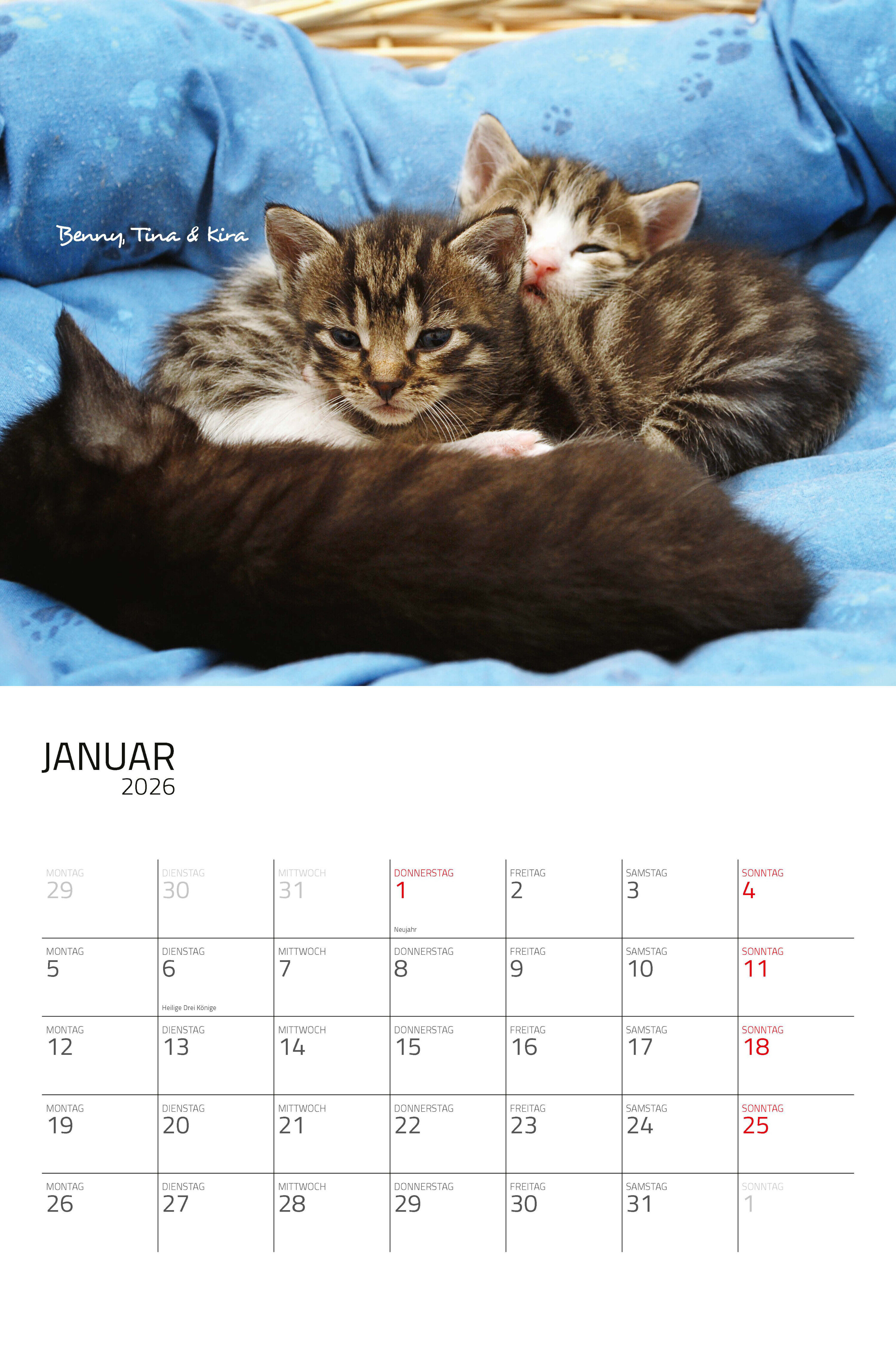 Dieser bezaubernde Kalender lässt das Herz eines jeden Katzenliebhabers höher schlagen! Monat für Monat begleiten Sie die süßesten Kätzchen mal verspielt in der freien Natur, mal gemütlich in ihrem Kratzbaum. Ob sie neugierig ihre Umgebung erkunden, fröhlich t...