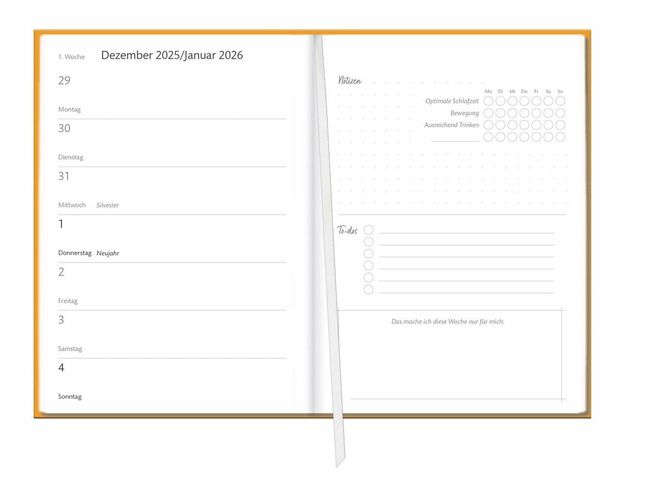 Klein und praktisch: Taschenkalender im DINA6-Format mit einer Doppelseite Platz pro Woche und Lesebändchen - Was steht diese Woche Wichtiges an? Buchkalender mit viel Platz für Notizen, mit dem Sie stilvoll den Überblick behalten - Wie ein Sonnenstrahl im A...
