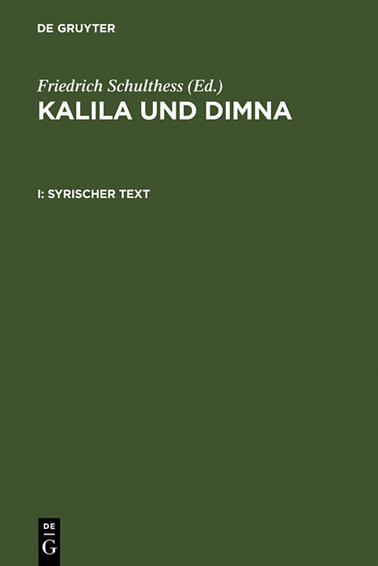 Keine ausführliche Beschreibung für "Kalila und Dimna" verfügbar. Klappentext I: Syrischer Text -- Frontmatter -- Inhalt -- Verweise und Siglen -- Vorbemerkungen -- Nachträge -- Syrischer Text -- Teil 1 -- Teil 2 -- Teil 3 -- Teil 4 -- Teil 5 -- Teil...