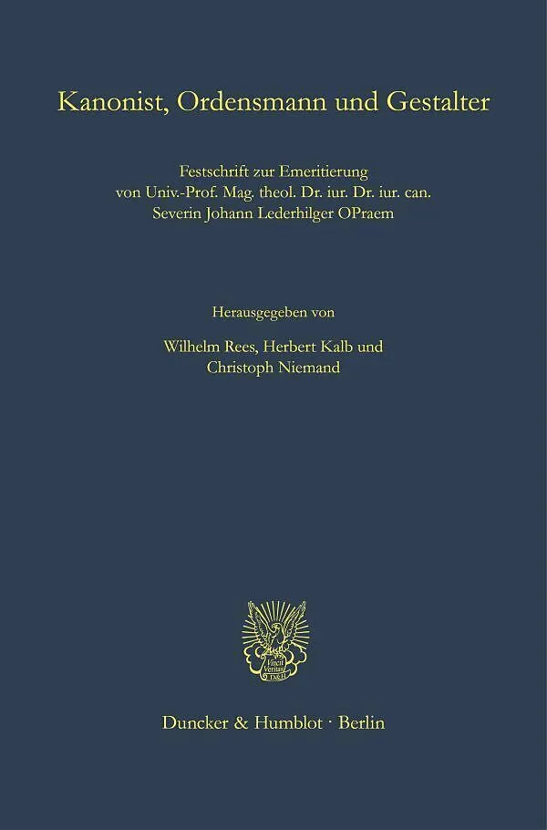 Die Beendigung des aktiven akademischen Dienstes von Severin Johann Lederhilger OPraem nehmen Fachkolleginnen und -kollegen, Freunde, Schüler und Weggefährten aus der akademischen Welt Österreichs und darüber hinaus sowie Ordensangehörige zum Anlass, um den Professor für Kirchenrecht und Vorstand des Instituts für Kirchenrecht der KU Linz sowie den Prämonstratenserchorherrn des Stiftes Schlägl, den Generalvikar der Diözese Linz und Vizeoffizial des Diözesangerichts Linz mit einer Festschrift zu ehren und sein wissenschaftliches Werk zu würdigen. Die Festschrift trägt den Titel »Kanonist, Ordensmann und Gestalter«. Dieser nimmt nicht nur auf Lederhilgers ertragreiche forscherische Tätigkeit auf dem Gebiet des kanonischen Rechts der katholischen Kirche Bezug, sondern auch auf die vielen wertvollen Dienste für die institutionelle und rechtliche Gestaltung des kirchlichen Lebens und des Ordenslebens sowie in der kirchenrechtlichen und seelsorglichen Beratung. Die Ausführungen der Autorinnen und Autoren der Festschrift greifen wesentliche Forschungsbereiche von Univ.-Prof. Mag. theol. Dr. iur. Dr. iur. can. Severin Johann Lederhilger auf, wenden sich aber auch grundlegenden und aktuellen kanonistischen, ordensrechtlichen und interreligiösen Fragenkreisen sowie dem Religionsrecht zu.