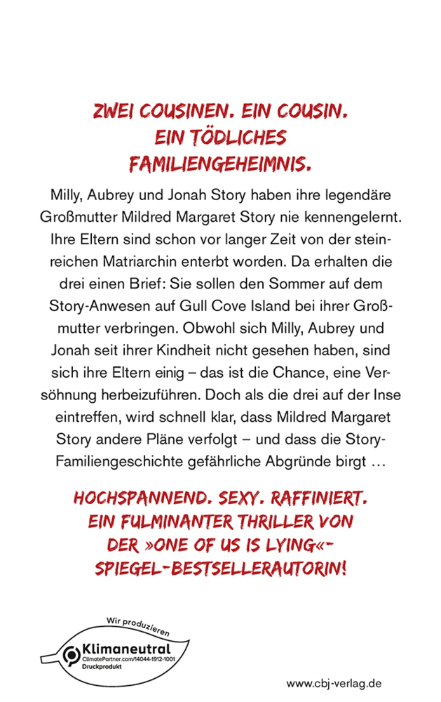 Drei Cousins. Eine Familie. Ein tödliches Geheimnis. Milly, Aubrey und Jonah Story haben ihre legendäre Großmutter Mildred Margaret Story nie kennengelernt. Ihre Eltern sind schon vor langer Zeit von der High-Society-Matriarchin enterbt worden. Da erhalten die...