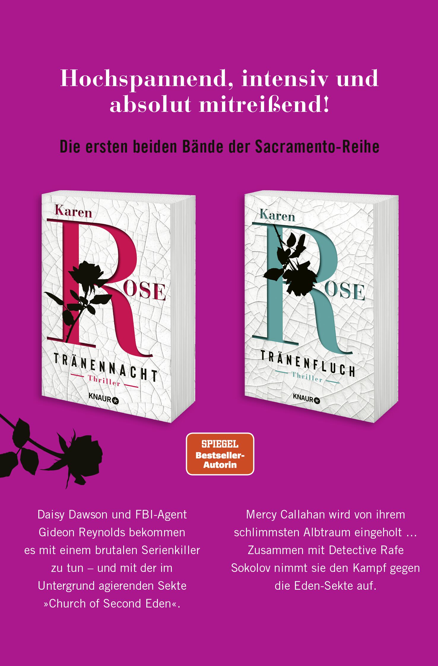 Wenn das Ende naht, ist die Gefahr am größten »Tränenschwur« ist der 3. Thriller der Sacramento-Reihe von Bestseller-Autorin Karen Rose und das atemraubende Finale der Geschichte um die mörderische Sekte Church of Second Eden. Zwar konnten die ehemaligen Sekt...